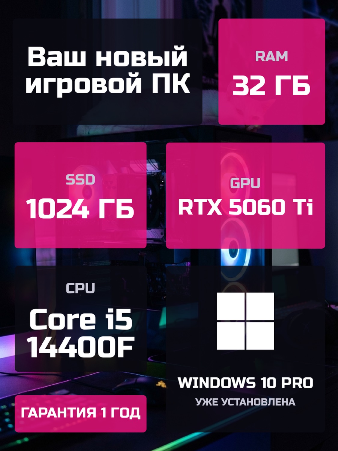 Процессор Intel Core i5-14400F10 ядер · 16 потоков · 2.5 → 4.7 ГГц