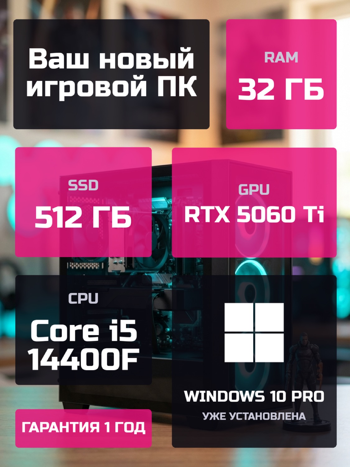 Процессор Intel Core i5-14400F10 ядер · 16 потоков · 2.5 → 4.7 ГГц