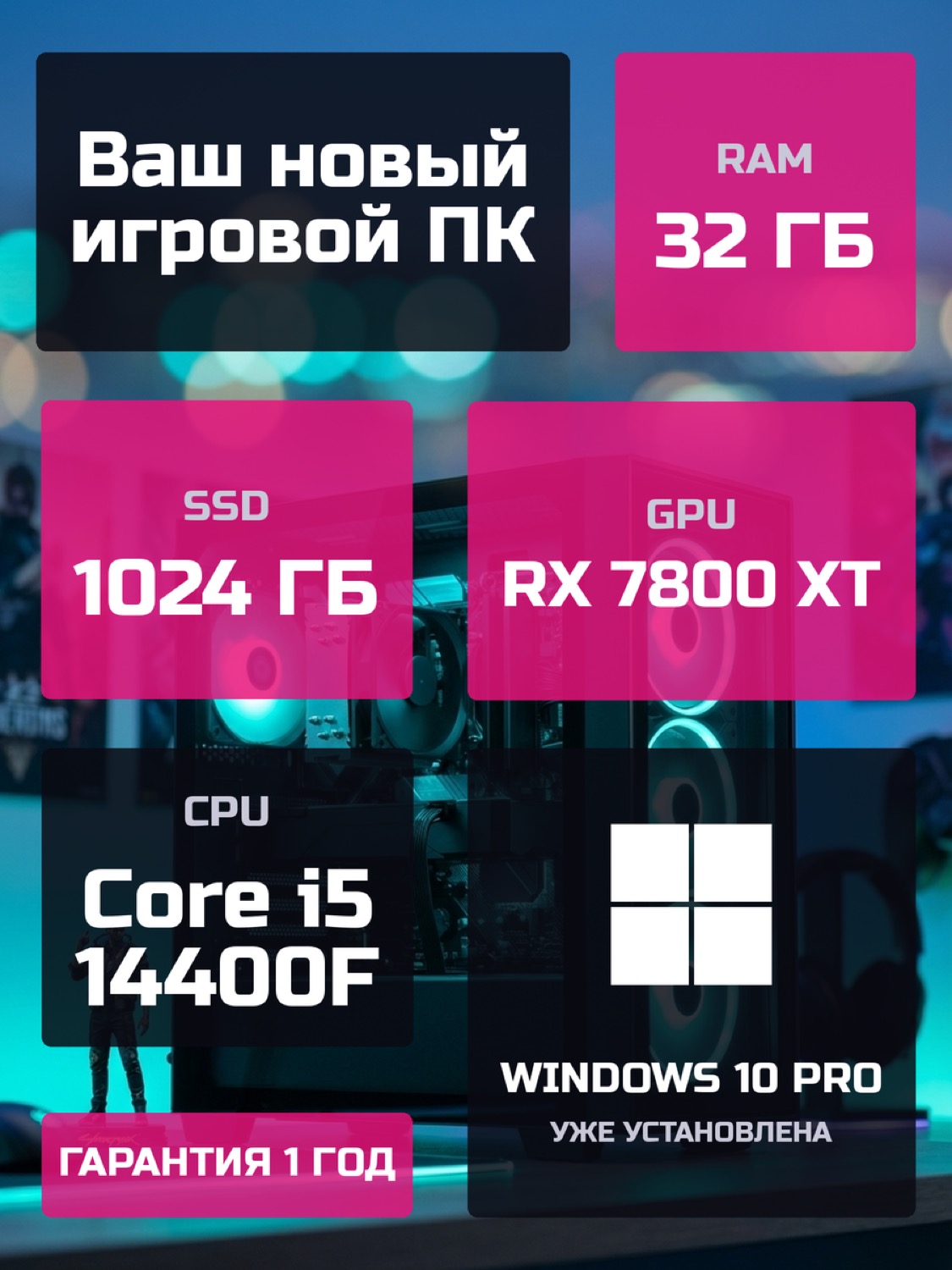 Процессор Intel Core i5-14400F10 ядер · 16 потоков · 2.5 → 4.7 ГГц