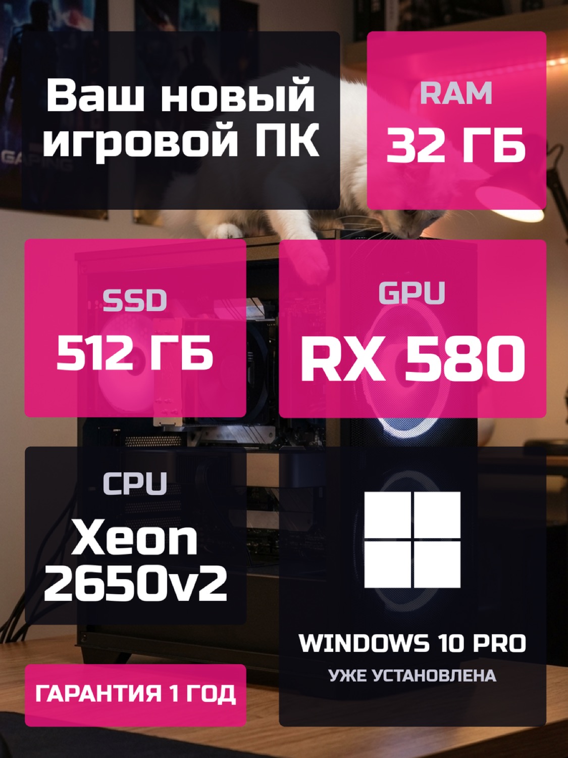 Процессор Intel Xeon E5-2650 v28 ядер · 16 потоков · 2.6 → 3.4 ГГц