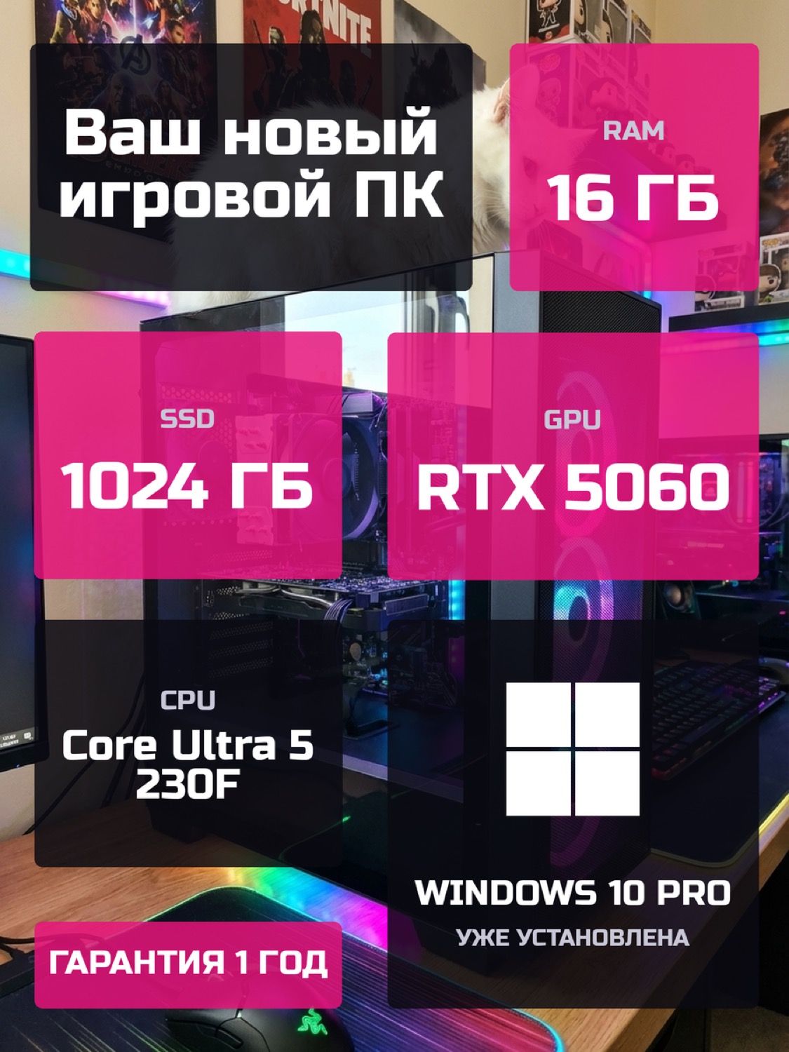 Процессор Intel Core Ultra 5 230F10 ядер · 10 потоков · 3.3 → 4.9 ГГц