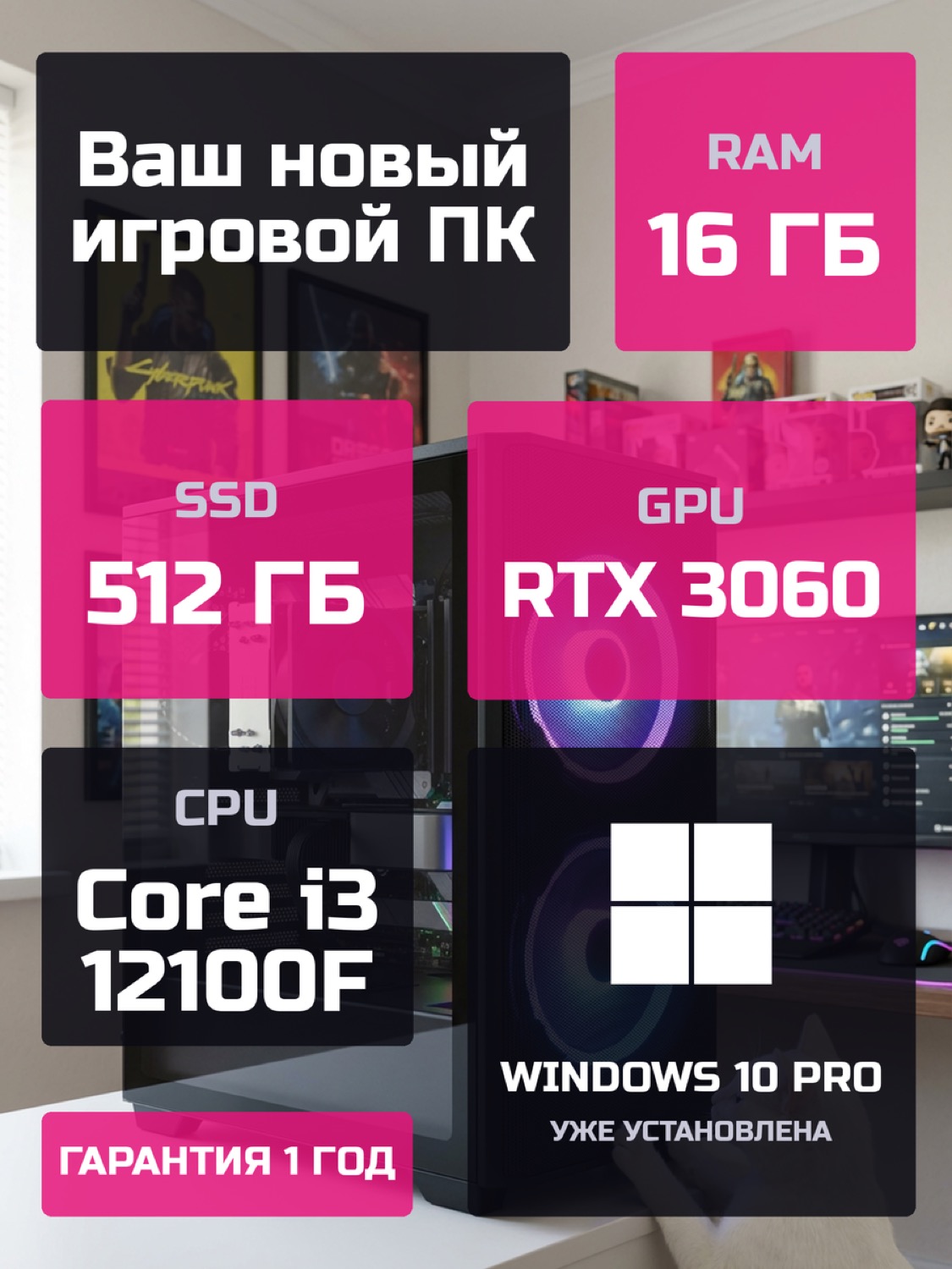 Процессор Intel Core i3-12100F4 ядер · 8 потоков · 3.3 → 4.3 ГГц