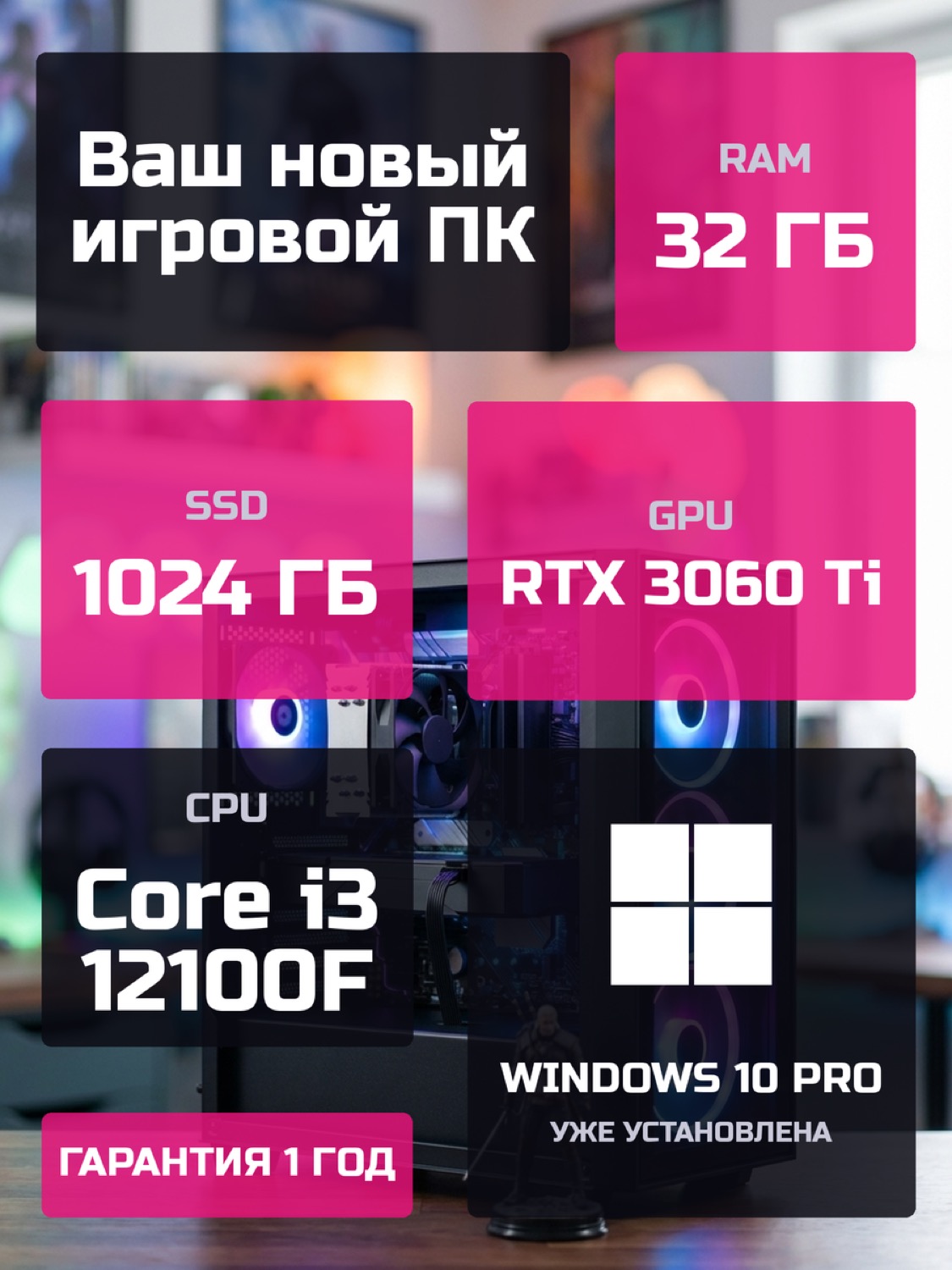 Процессор Intel Core i3-12100F4 ядер · 8 потоков · 3.3 → 4.3 ГГц