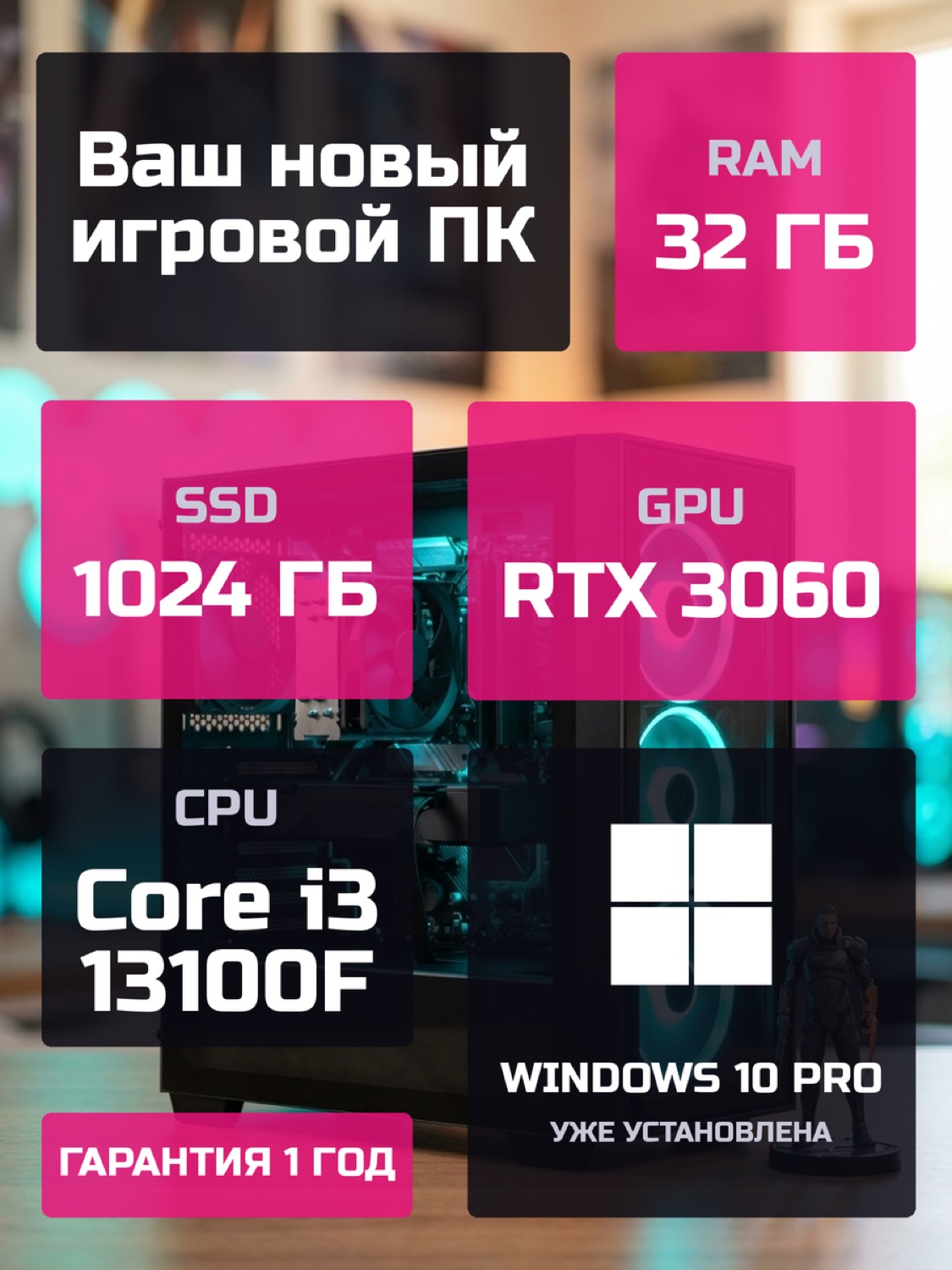 Процессор Intel Core i3-13100F4 ядер · 8 потоков · 3.4 → 4.5 ГГц