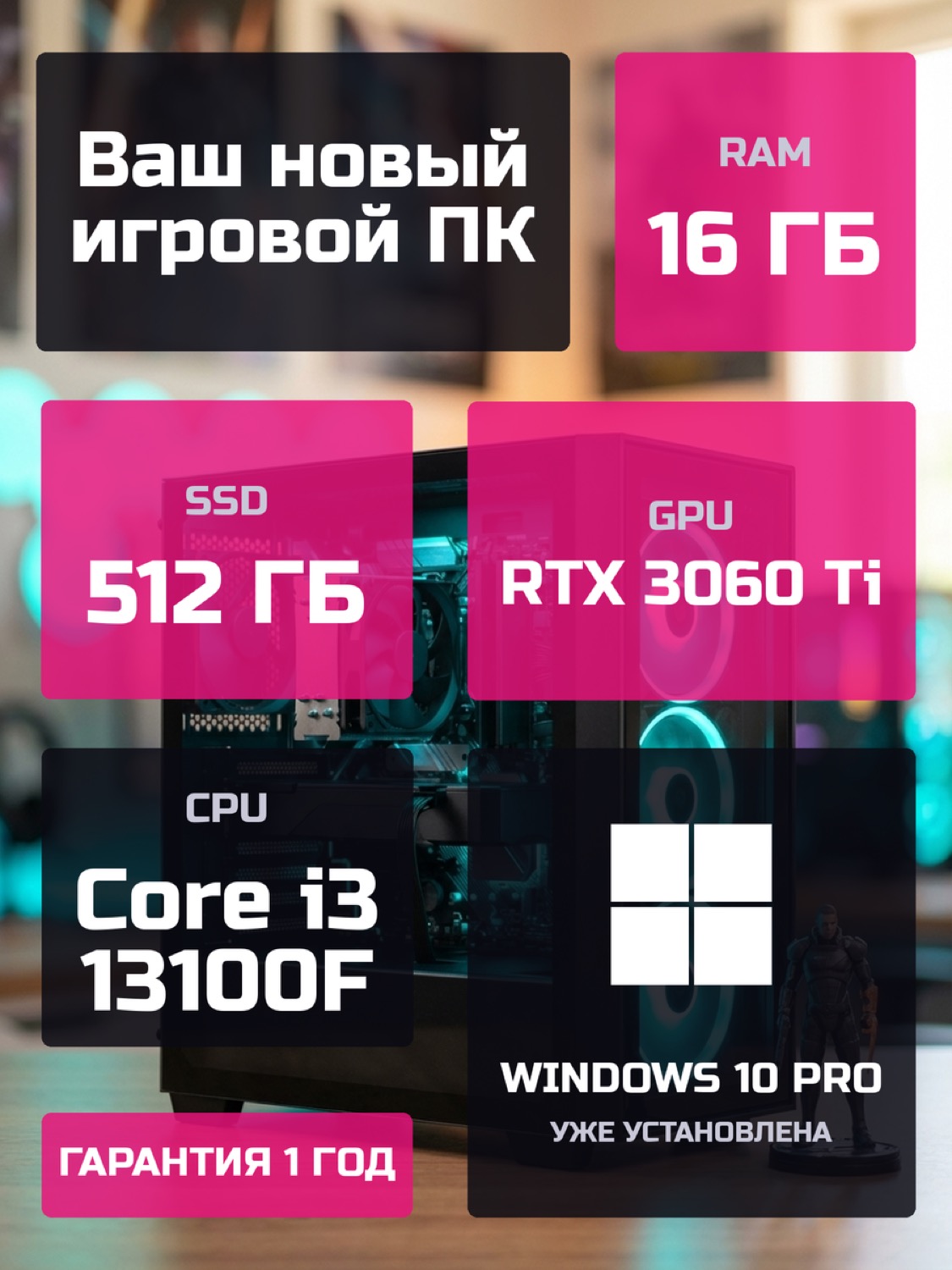 Процессор Intel Core i3-13100F4 ядер · 8 потоков · 3.4 → 4.5 ГГц