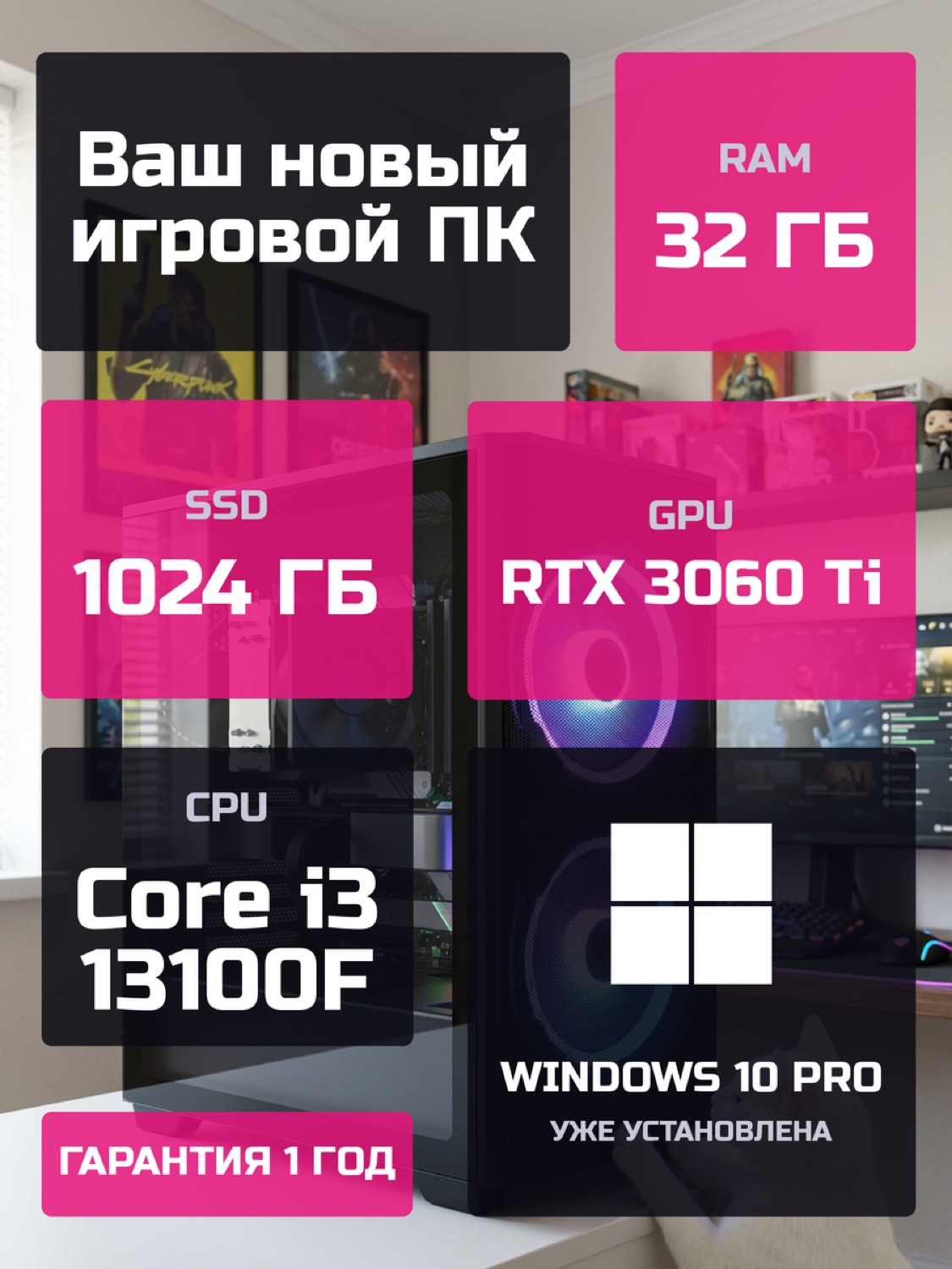 Процессор Intel Core i3-13100F4 ядер · 8 потоков · 3.4 → 4.5 ГГц