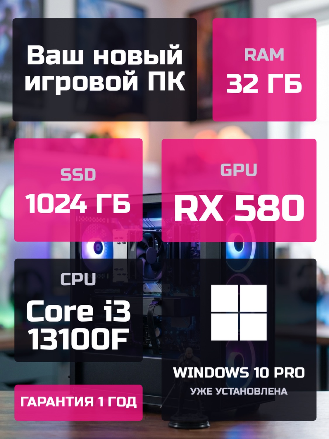 Процессор Intel Core i3-13100F4 ядер · 8 потоков · 3.4 → 4.5 ГГц