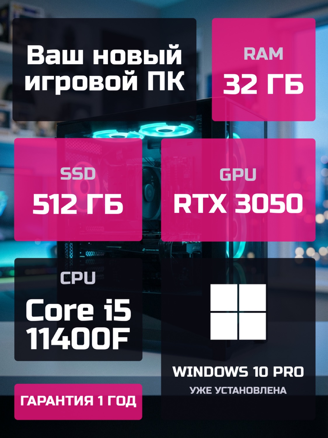 Процессор Intel Core i5-11400F6 ядер · 12 потоков · 2.6 → 4.4 ГГц