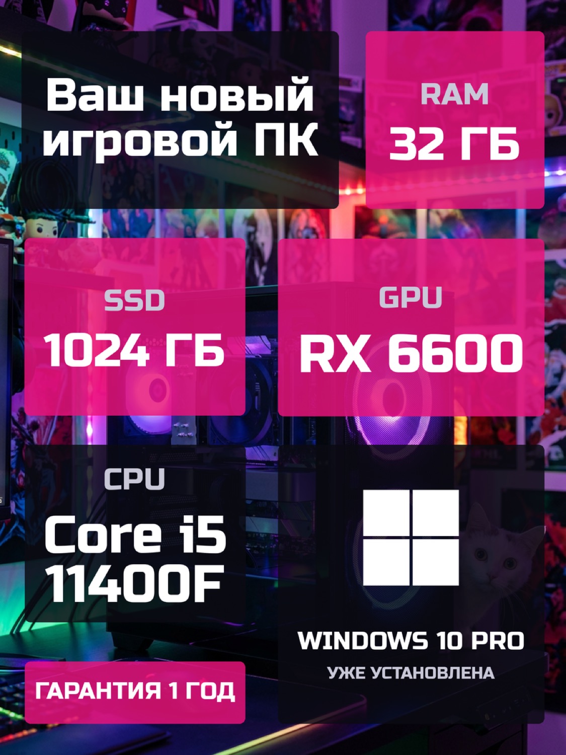 Процессор Intel Core i5-11400F6 ядер · 12 потоков · 2.6 → 4.4 ГГц