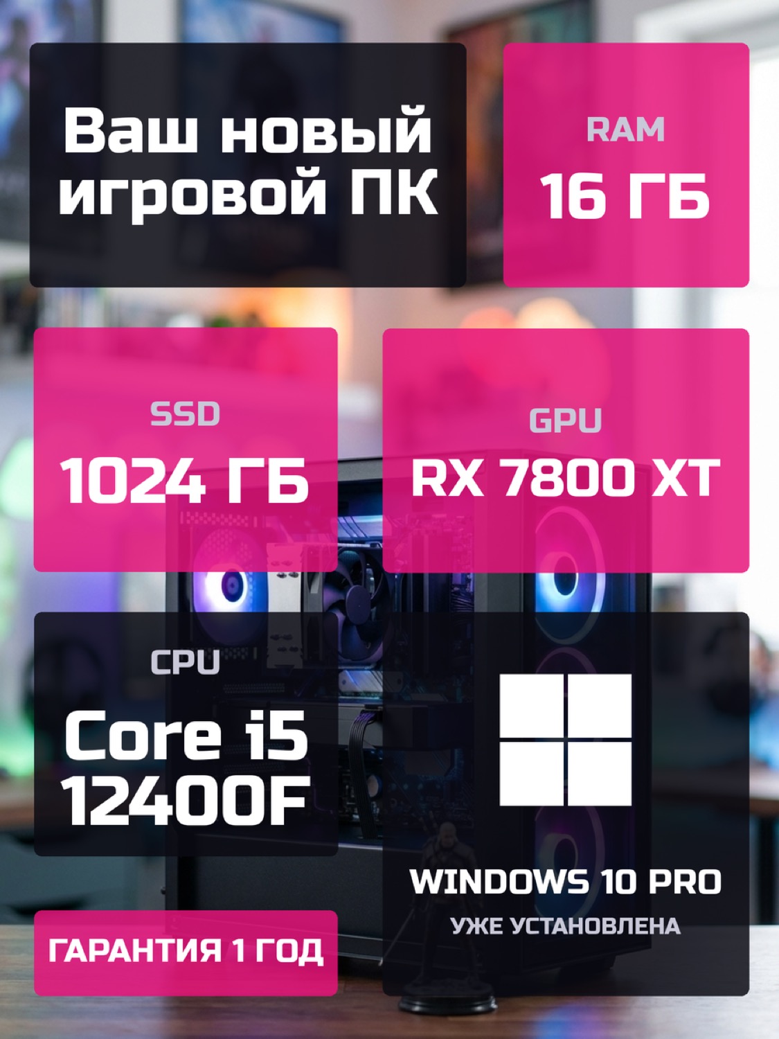 Процессор Intel Core i5-12400F6 ядер · 12 потоков · 2.5 → 4.4 ГГц