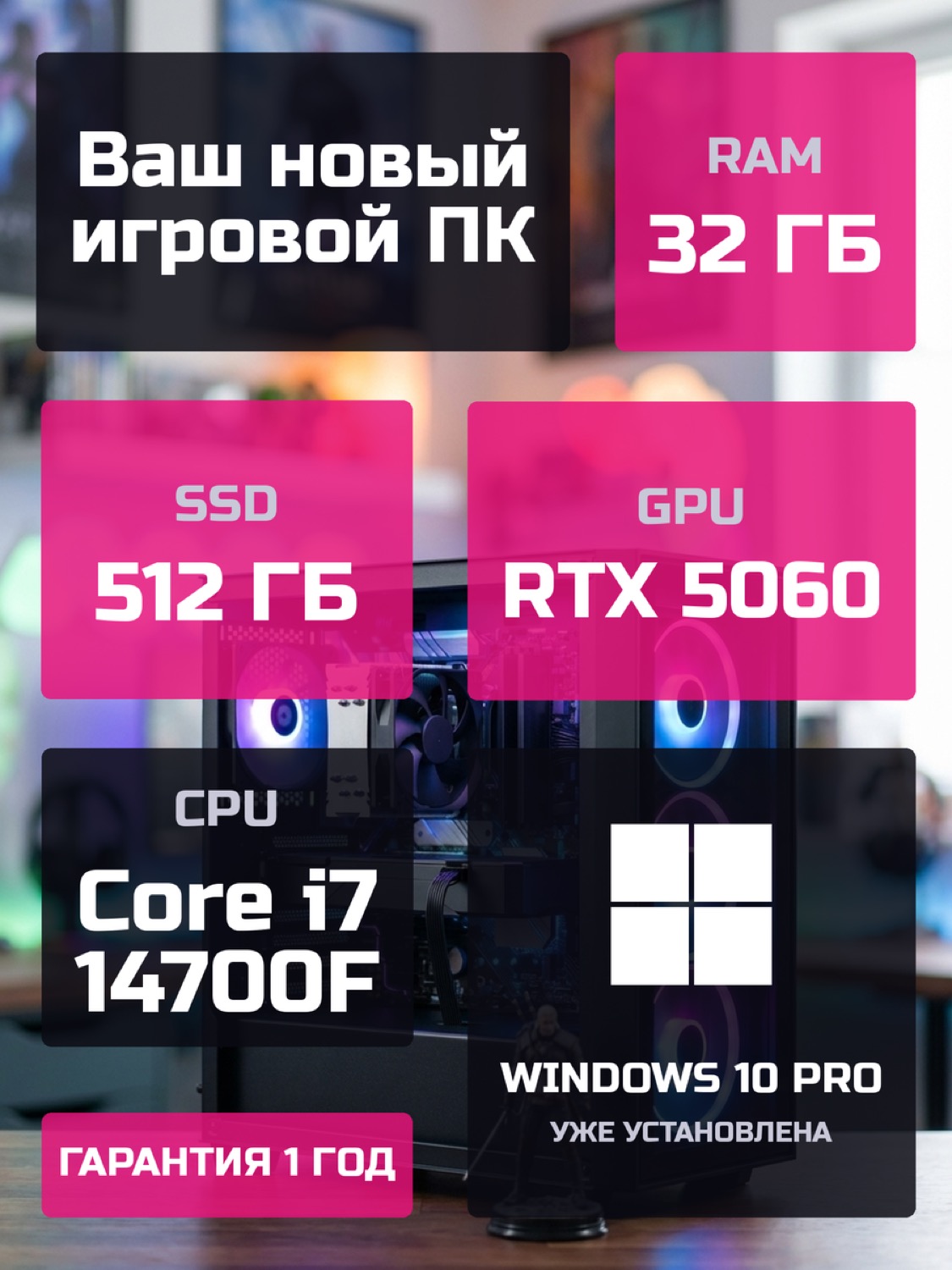Процессор Intel Core i7-14700F20 ядер · 28 потоков · 2.1 → 5.4 ГГц