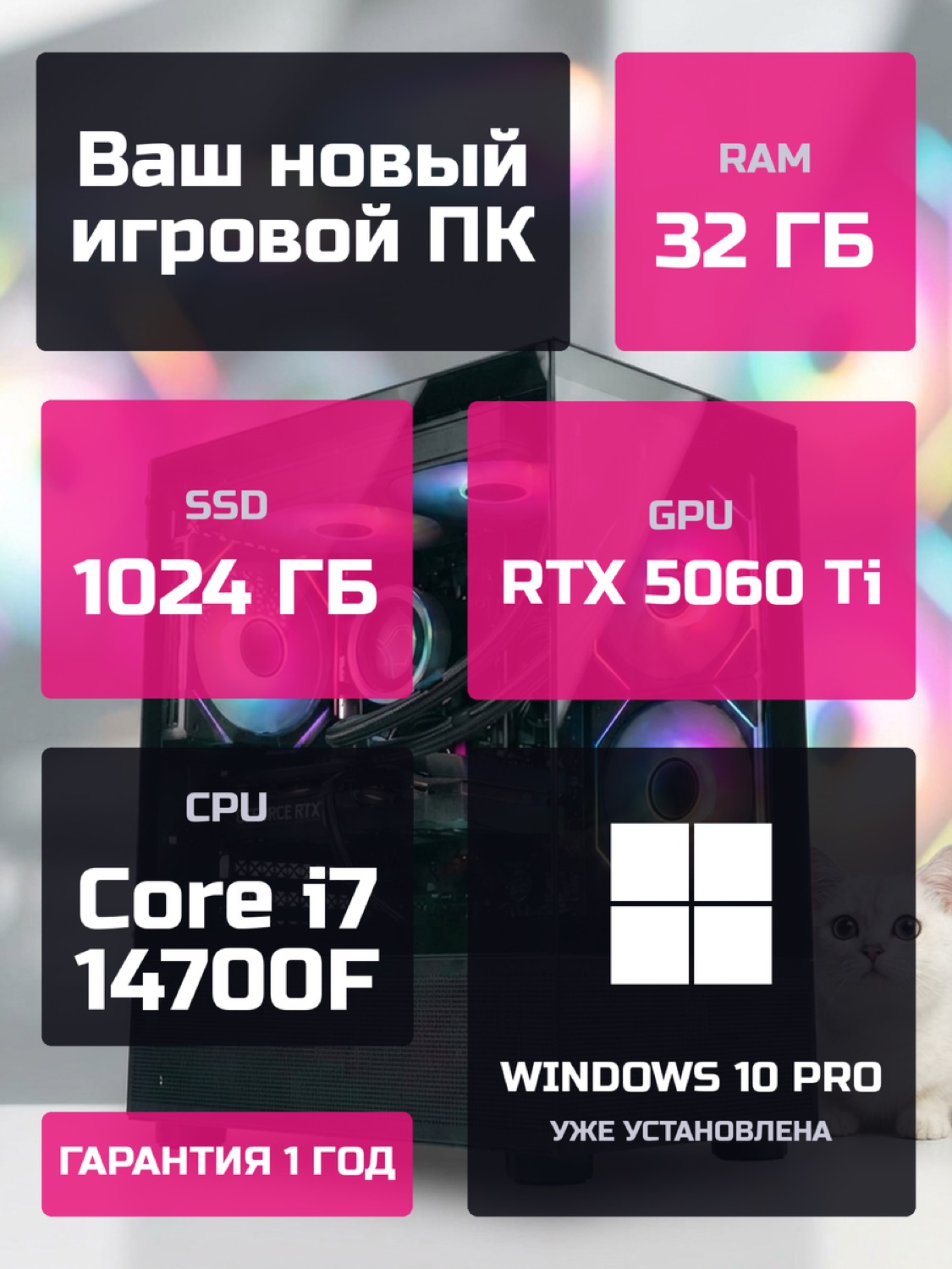 Процессор Intel Core i7-14700F20 ядер · 28 потоков · 2.1 → 5.4 ГГц