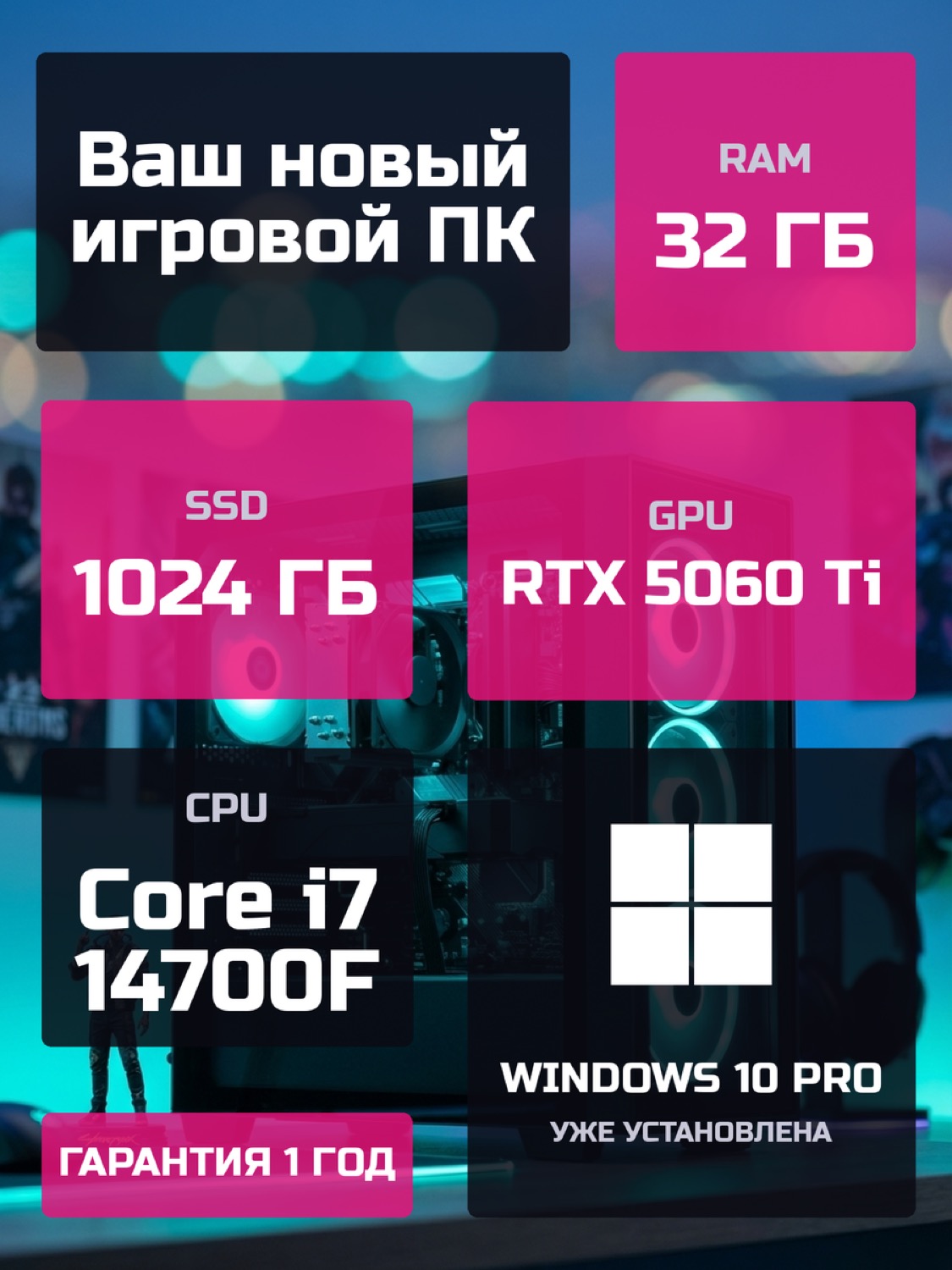 Процессор Intel Core i7-14700F20 ядер · 28 потоков · 2.1 → 5.4 ГГц