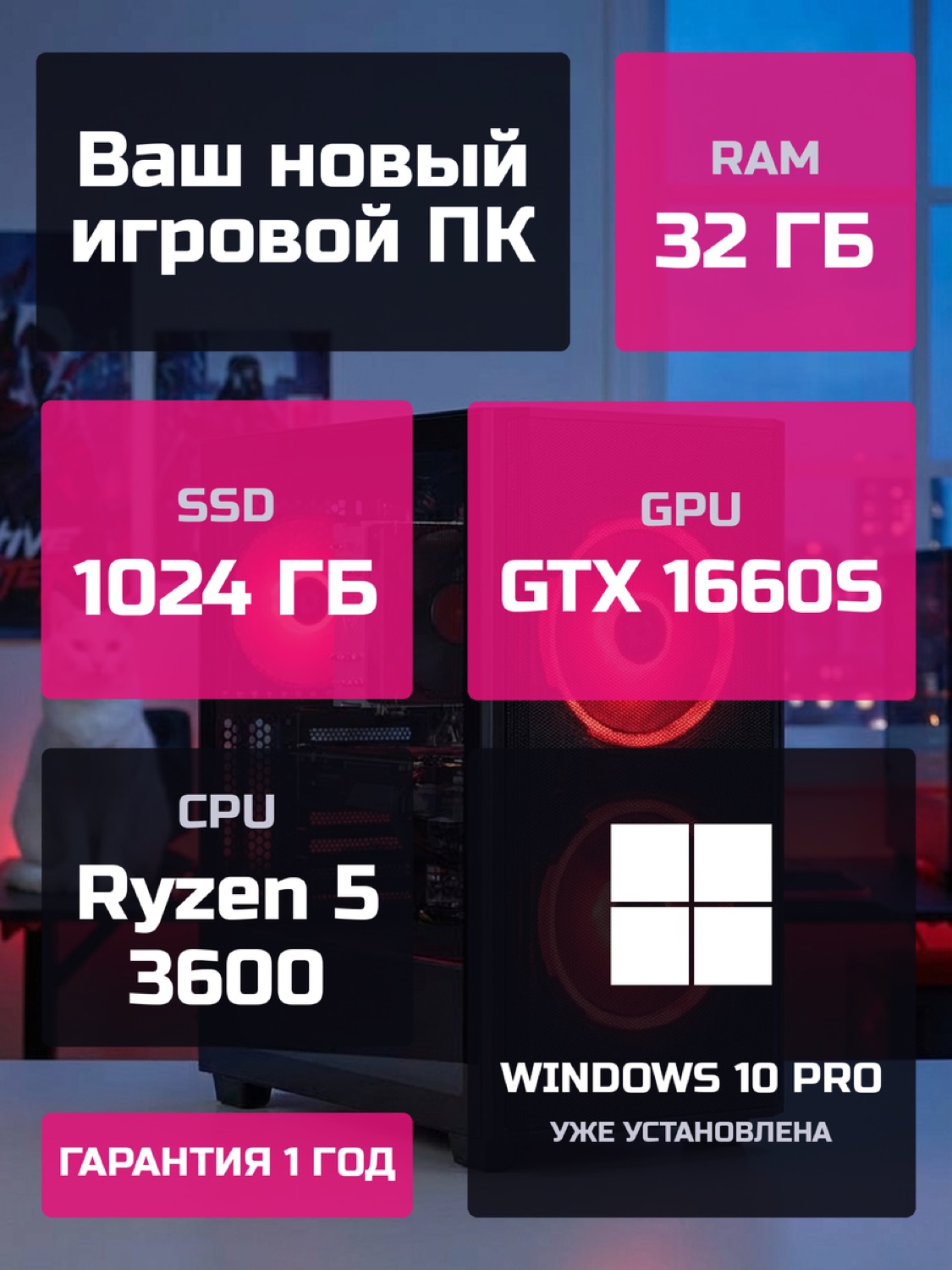 Процессор AMD Ryzen 5 36006 ядер · 12 потоков · 3.6 → 4.2 ГГц