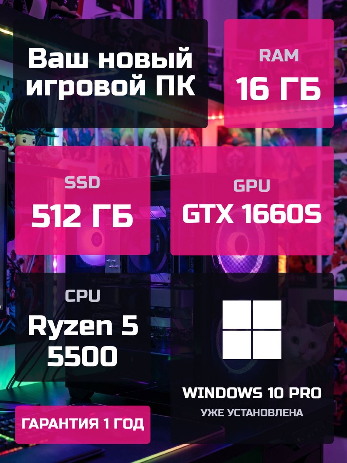 Процессор AMD Ryzen 5 55006 ядер · 12 потоков · 3.6 → 4.2 ГГц
