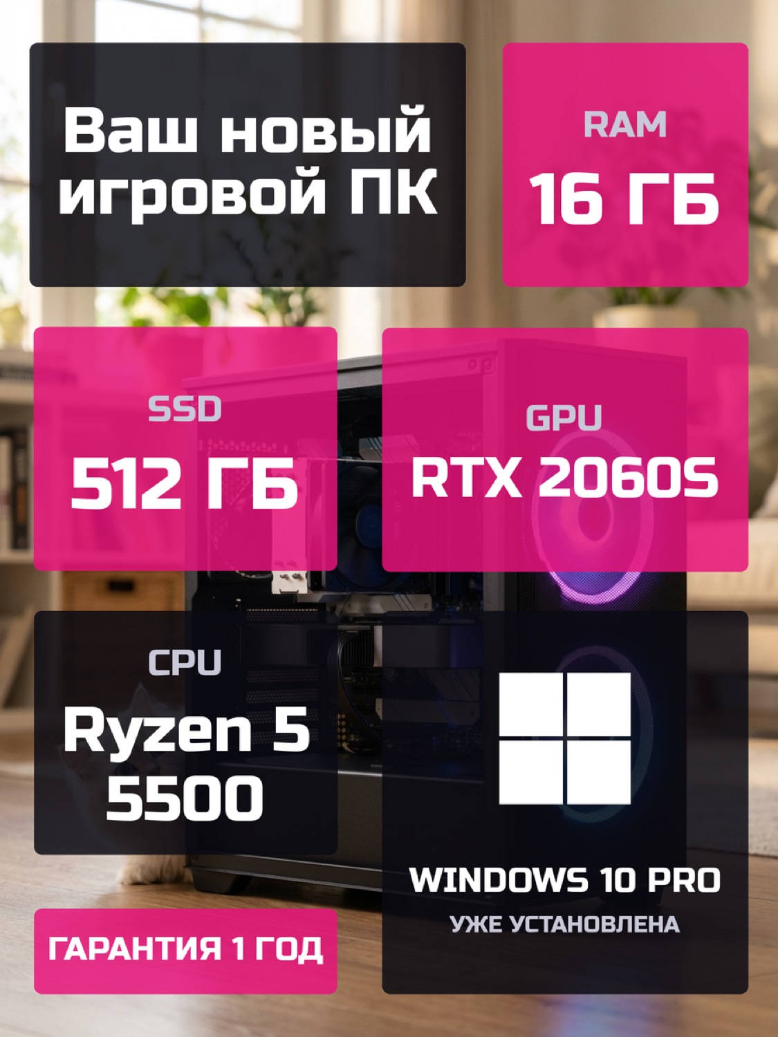 Процессор AMD Ryzen 5 55006 ядер · 12 потоков · 3.6 → 4.2 ГГц