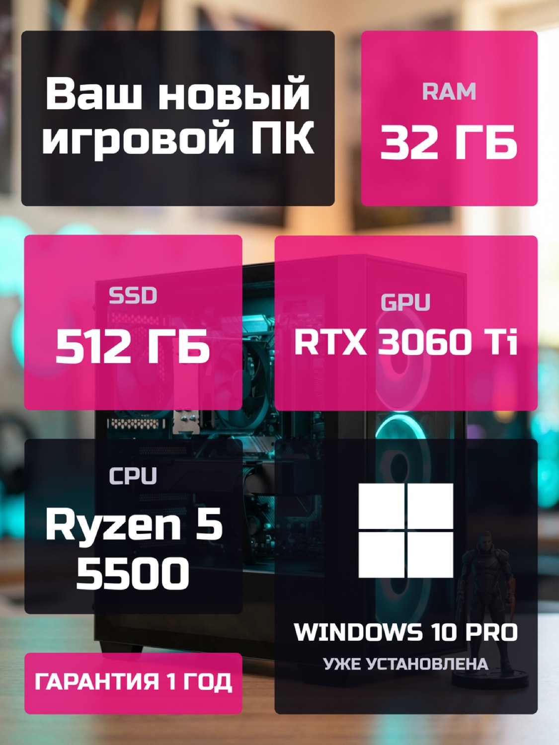 Процессор AMD Ryzen 5 55006 ядер · 12 потоков · 3.6 → 4.2 ГГц
