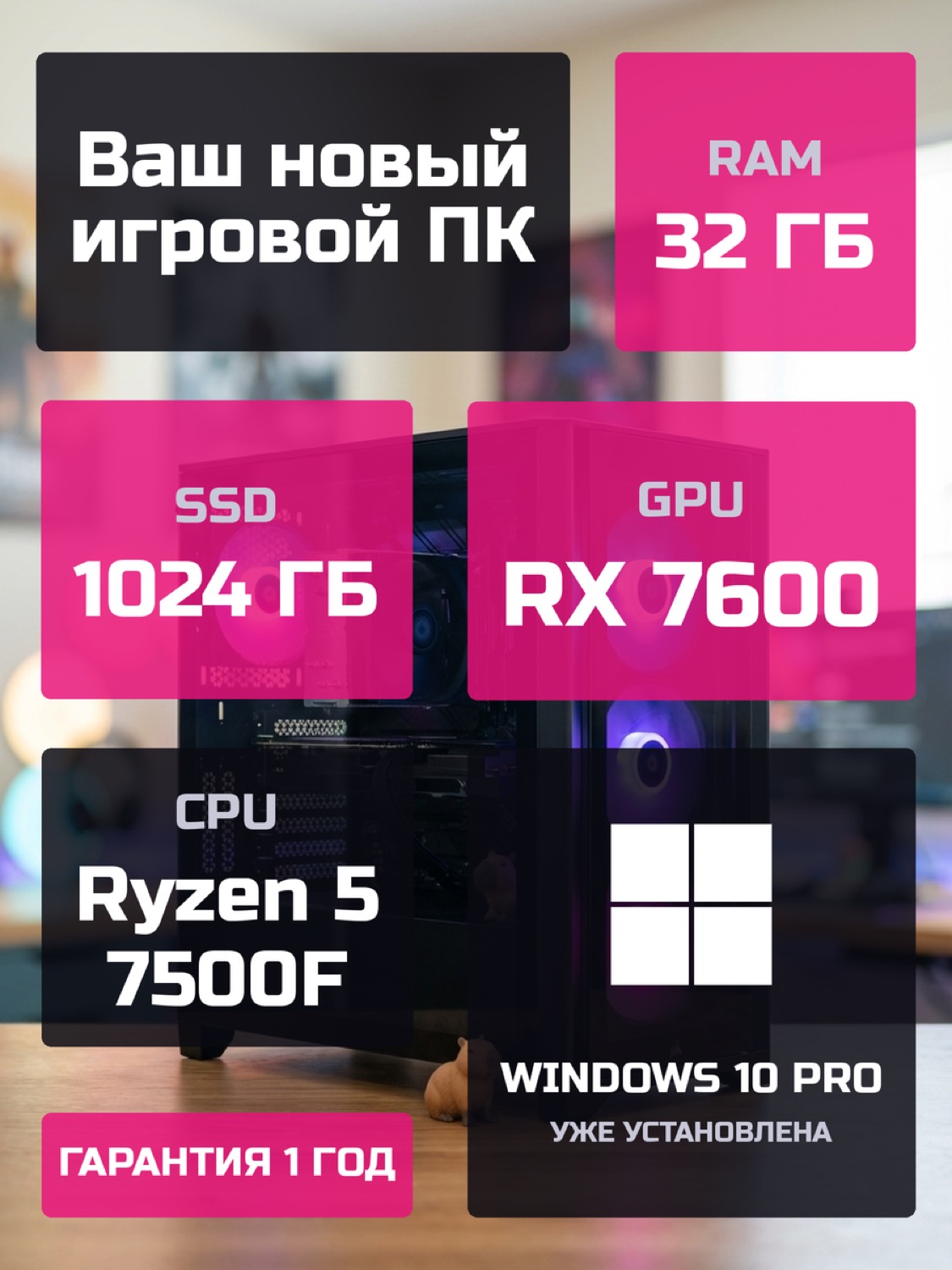 Процессор AMD Ryzen 5 7500F6 ядер · 12 потоков · 3.7 → 5.0 ГГц
