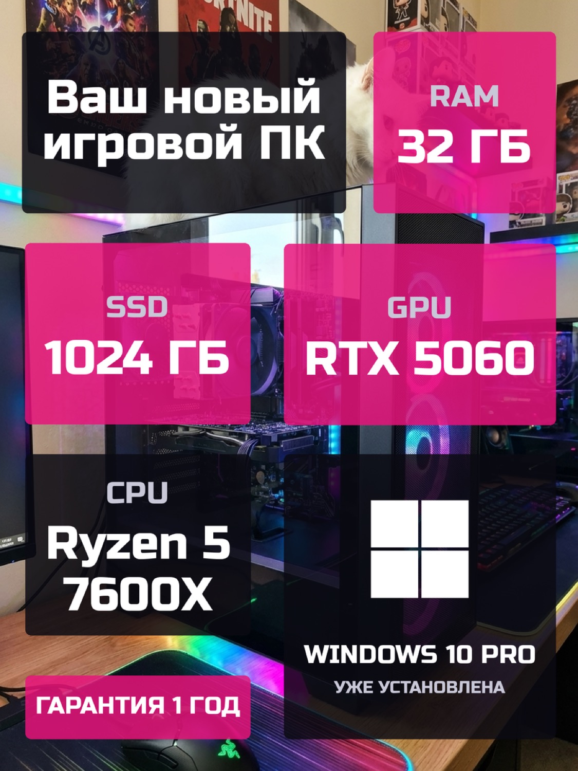 Процессор AMD Ryzen 5 7600X6 ядер · 12 потоков · 4.7 → 5.3 ГГц