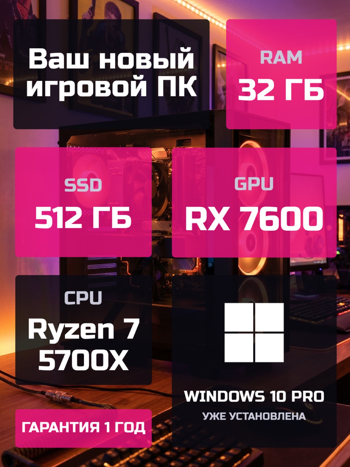 Процессор AMD Ryzen 7 5700X8 ядер · 16 потоков · 3.4 → 4.6 ГГц