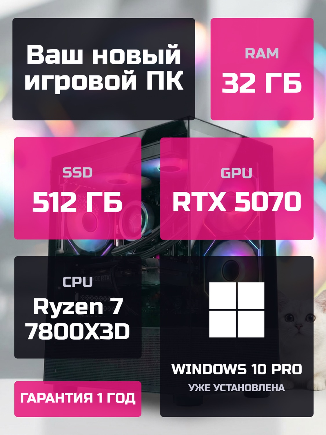 Процессор AMD Ryzen 7 7800X3D8 ядер · 16 потоков · 4.2 → 5.0 ГГц