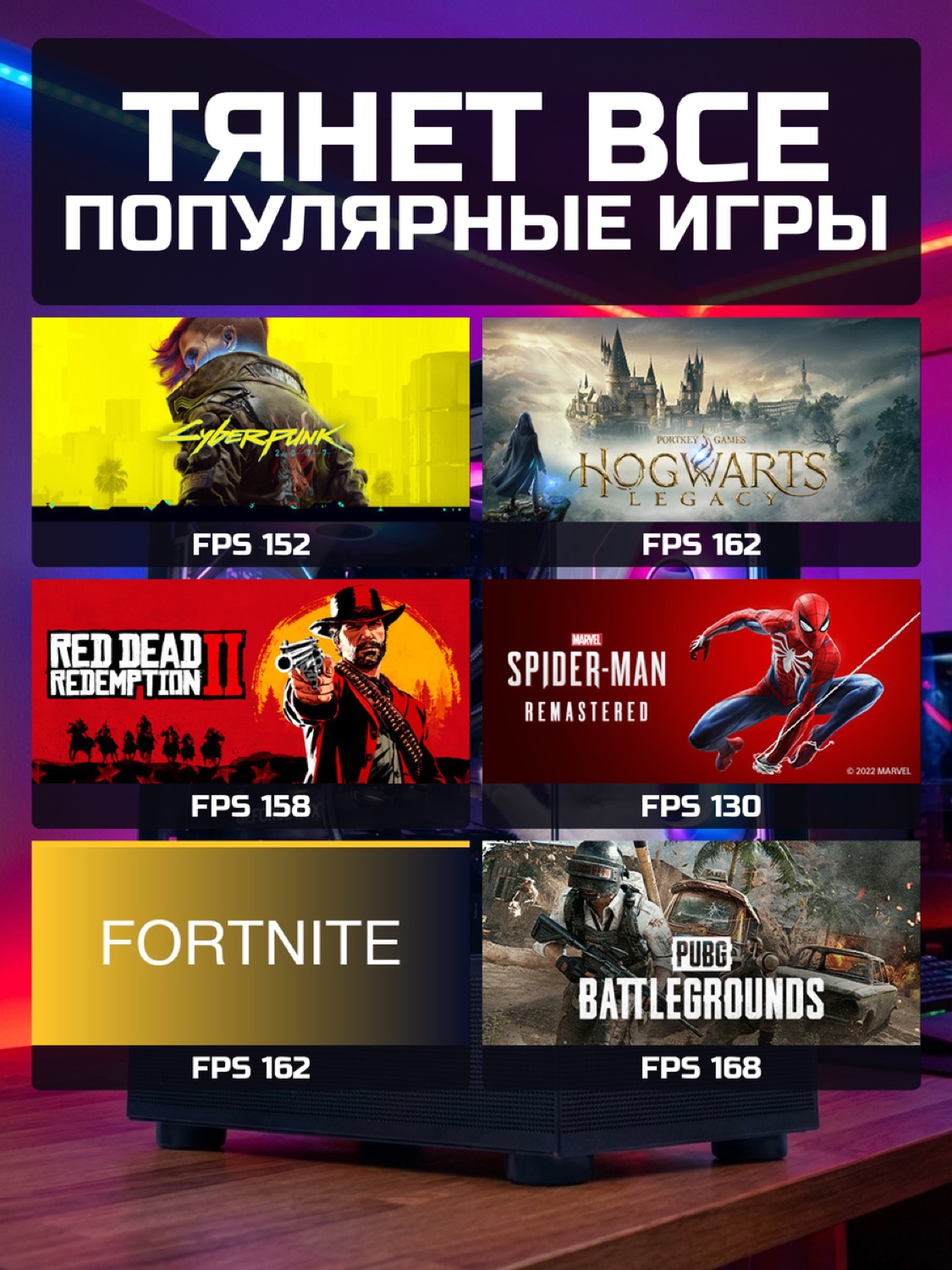 Процессор AMD Ryzen 7 7800X3D8 ядер · 16 потоков · 4.2 → 5.0 ГГц