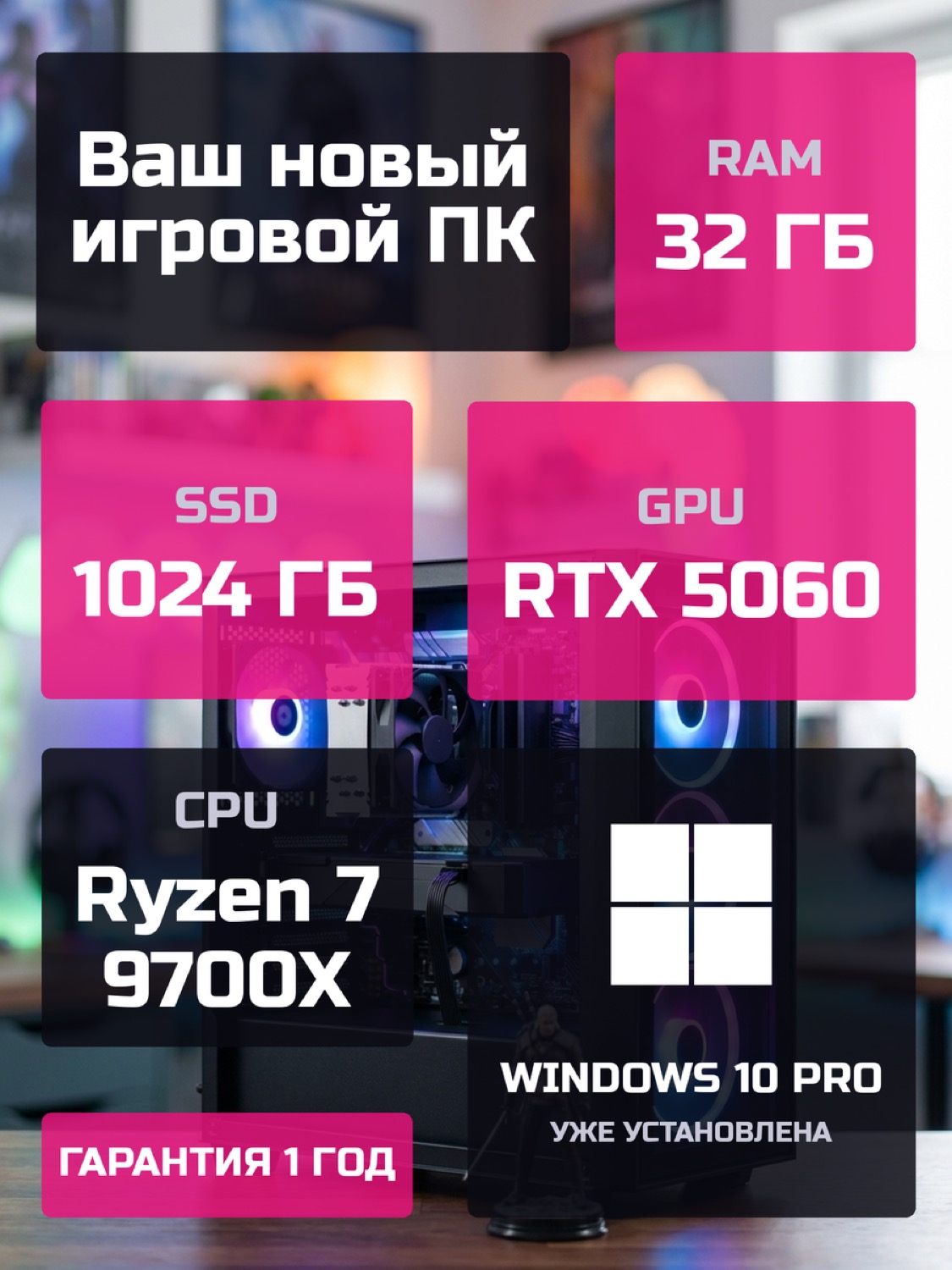 Процессор AMD Ryzen 7 9700X8 ядер · 16 потоков · 3.8 → 5.5 ГГц