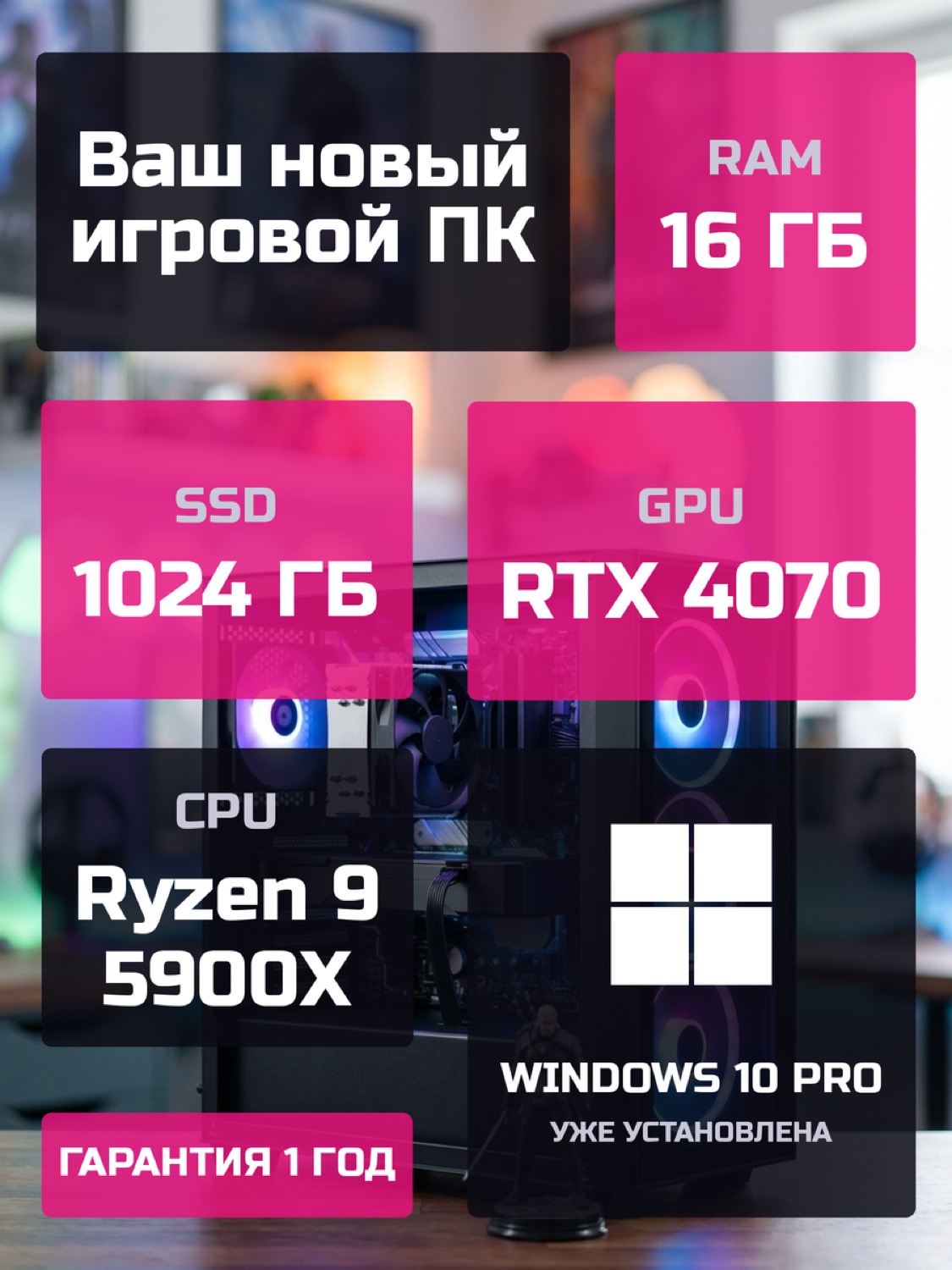 Процессор AMD Ryzen 9 5900X12 ядер · 24 потоков · 3.7 → 4.8 ГГц