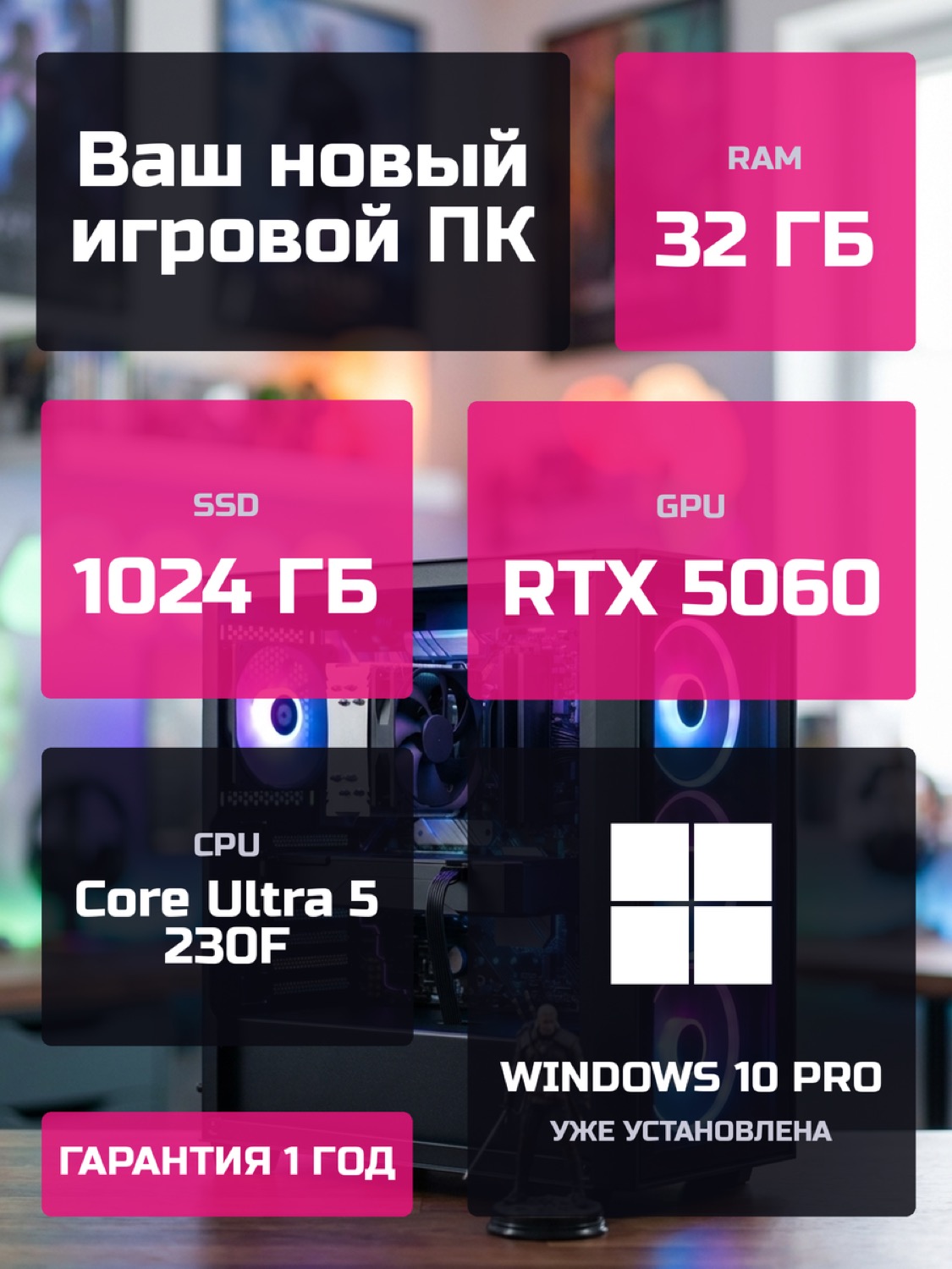 Процессор Intel Core Ultra 5 230F10 ядер · 10 потоков · 3.3 → 4.9 ГГц