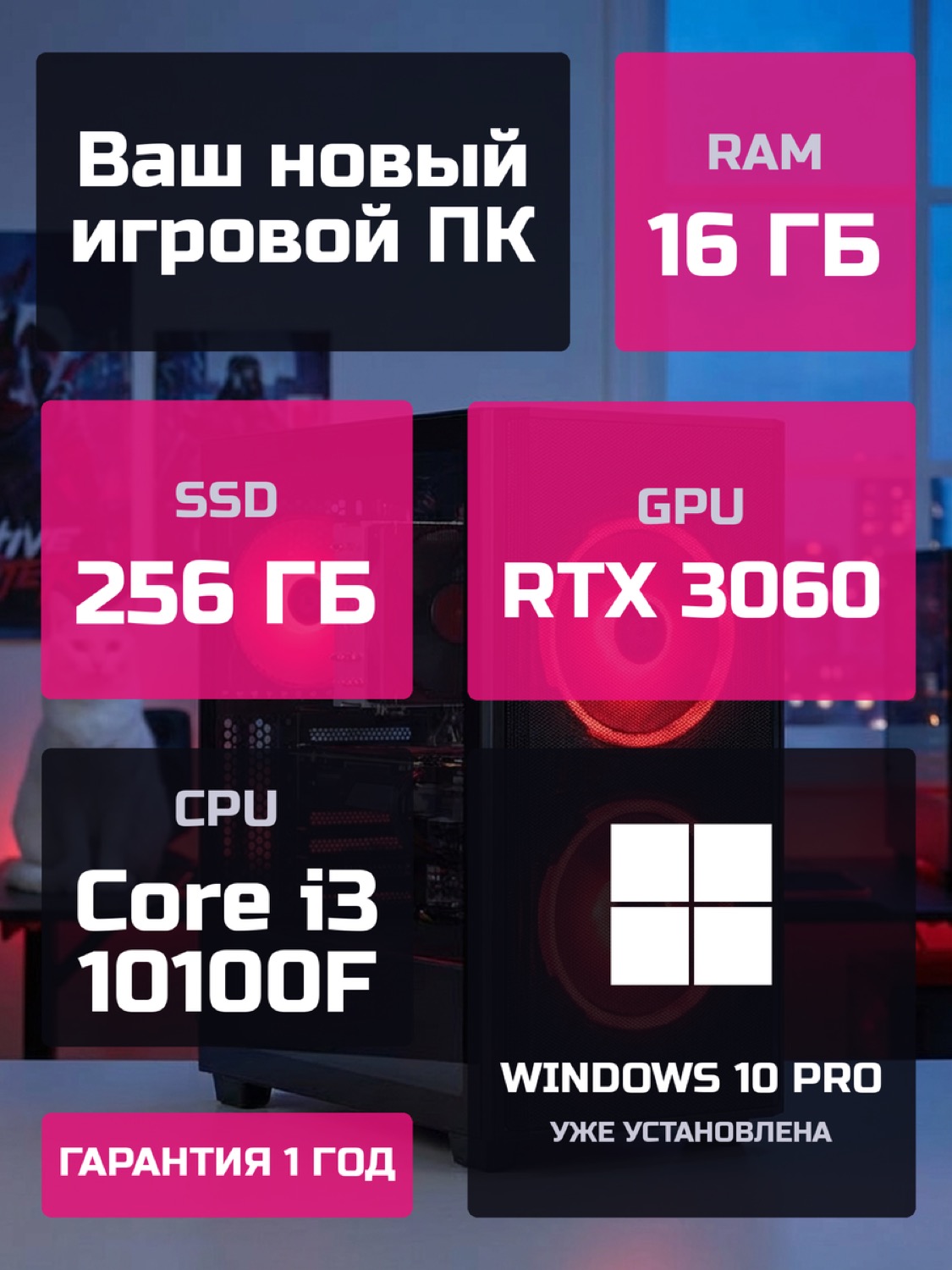 Процессор Intel Core i3-10100F4 ядер · 8 потоков · 3.6 → 4.3 ГГц