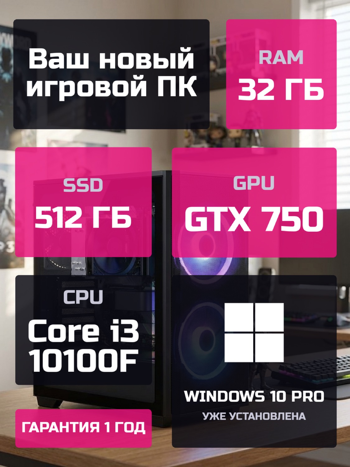 Процессор Intel Core i3-10100F4 ядер · 8 потоков · 3.6 → 4.3 ГГц