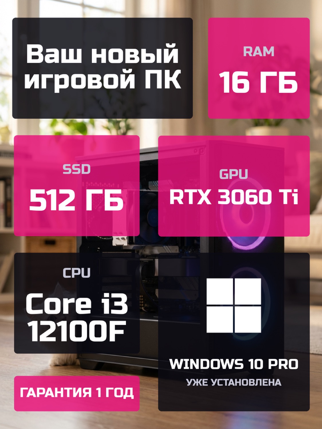 Процессор Intel Core i3-12100F4 ядер · 8 потоков · 3.3 → 4.3 ГГц