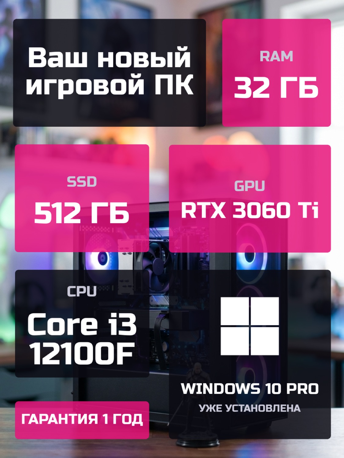 Процессор Intel Core i3-12100F4 ядер · 8 потоков · 3.3 → 4.3 ГГц