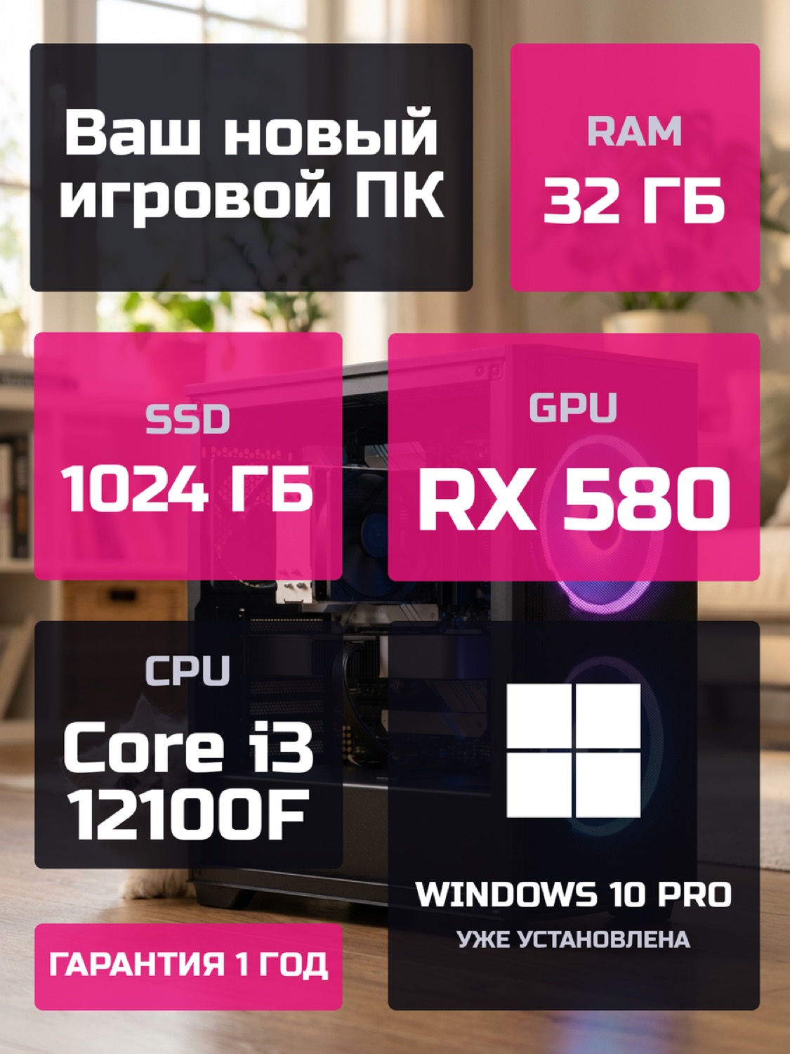 Процессор Intel Core i3-12100F4 ядер · 8 потоков · 3.3 → 4.3 ГГц