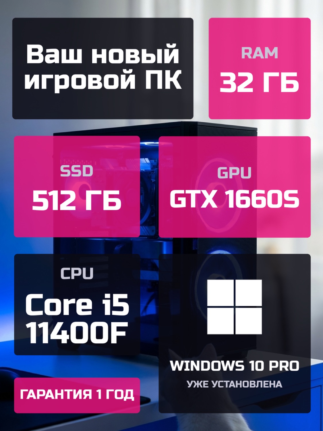 Процессор Intel Core i5-11400F6 ядер · 12 потоков · 2.6 → 4.4 ГГц