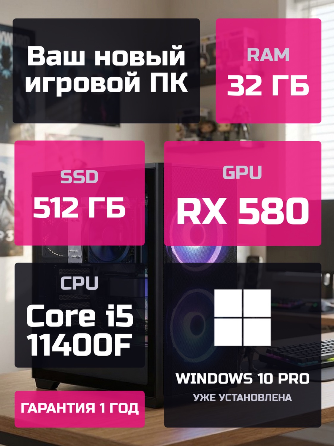Процессор Intel Core i5-11400F6 ядер · 12 потоков · 2.6 → 4.4 ГГц