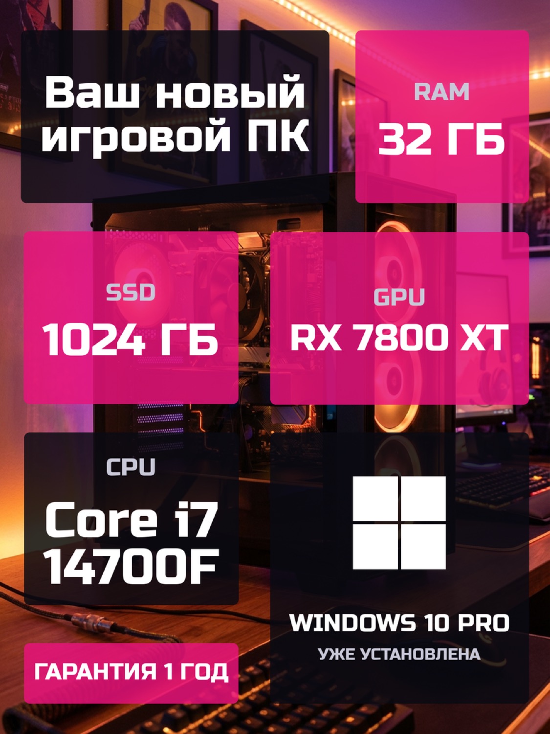 Процессор Intel Core i7-14700F20 ядер · 28 потоков · 2.1 → 5.4 ГГц