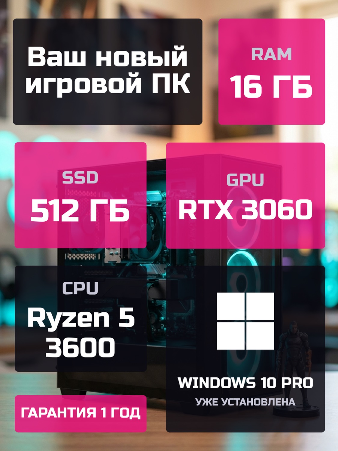Процессор AMD Ryzen 5 36006 ядер · 12 потоков · 3.6 → 4.2 ГГц