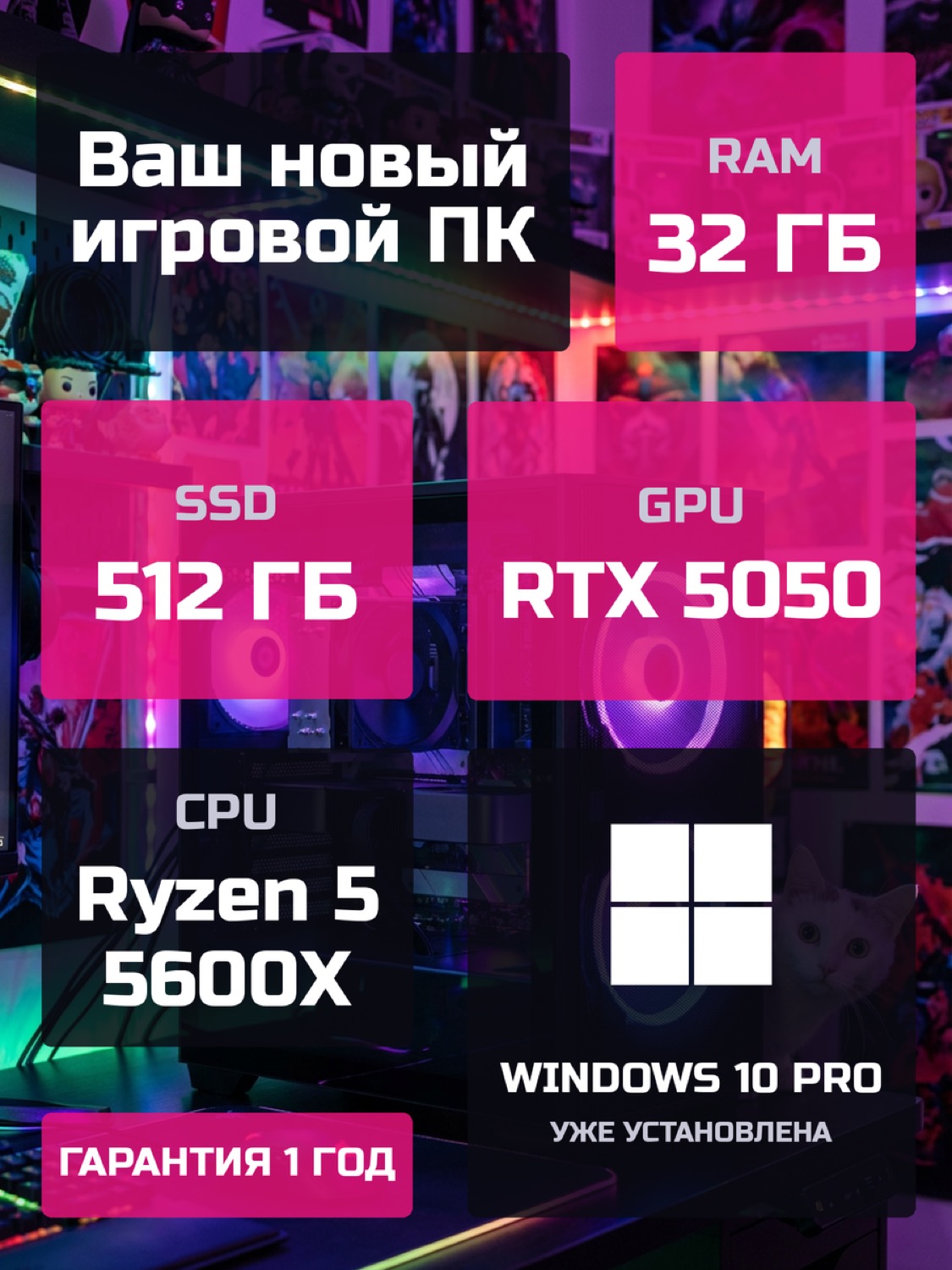 Процессор AMD Ryzen 5 5600X6 ядер · 12 потоков · 3.7 → 4.6 ГГц