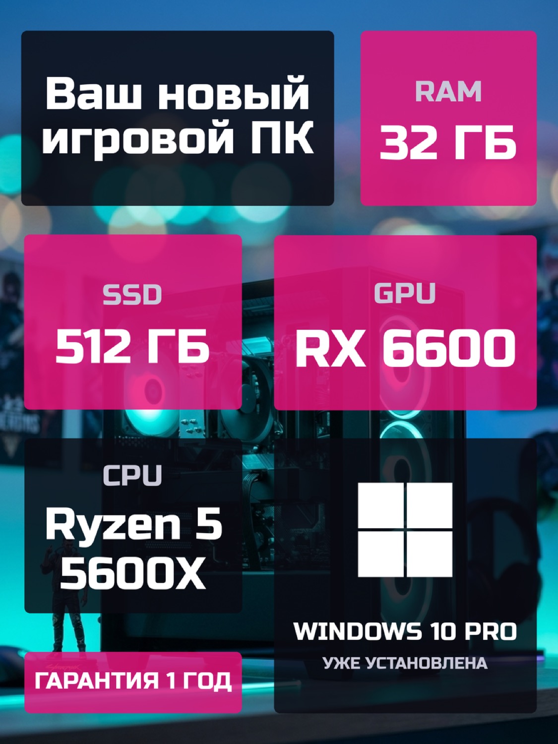 Процессор AMD Ryzen 5 5600X6 ядер · 12 потоков · 3.7 → 4.6 ГГц
