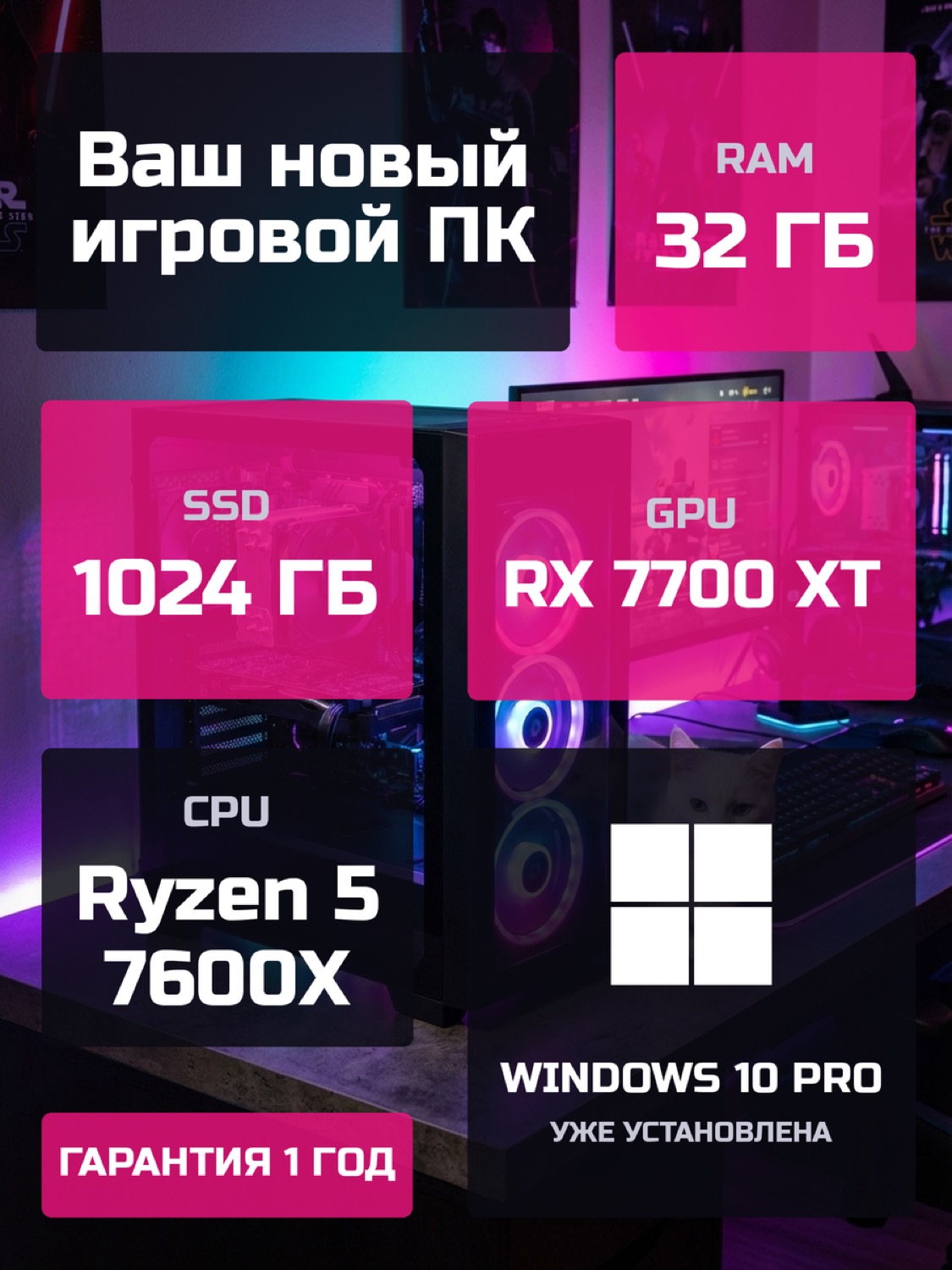 Процессор AMD Ryzen 5 7600X6 ядер · 12 потоков · 4.7 → 5.3 ГГц