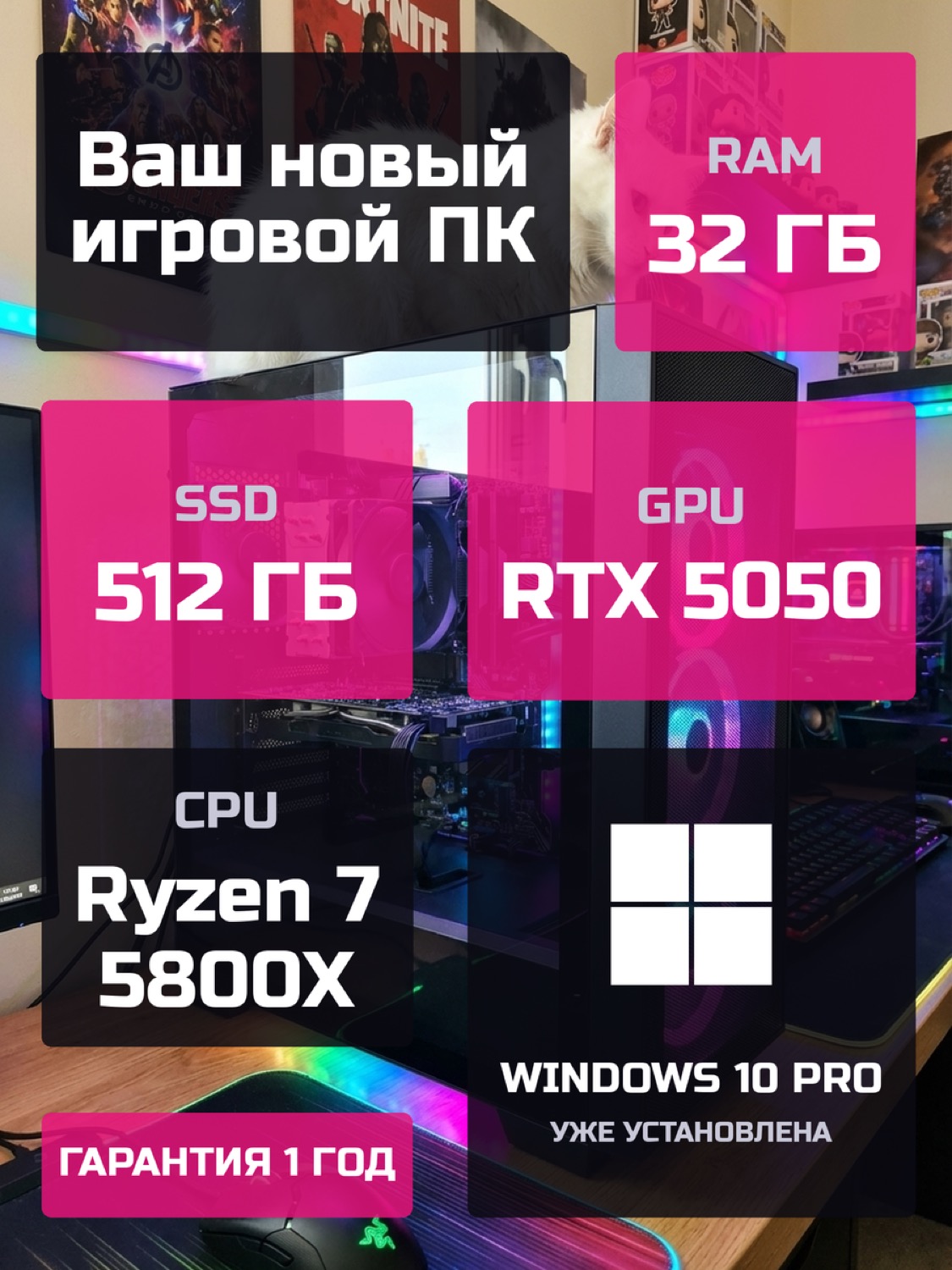 Процессор AMD Ryzen 7 5800X8 ядер · 16 потоков · 3.8 → 4.7 ГГц