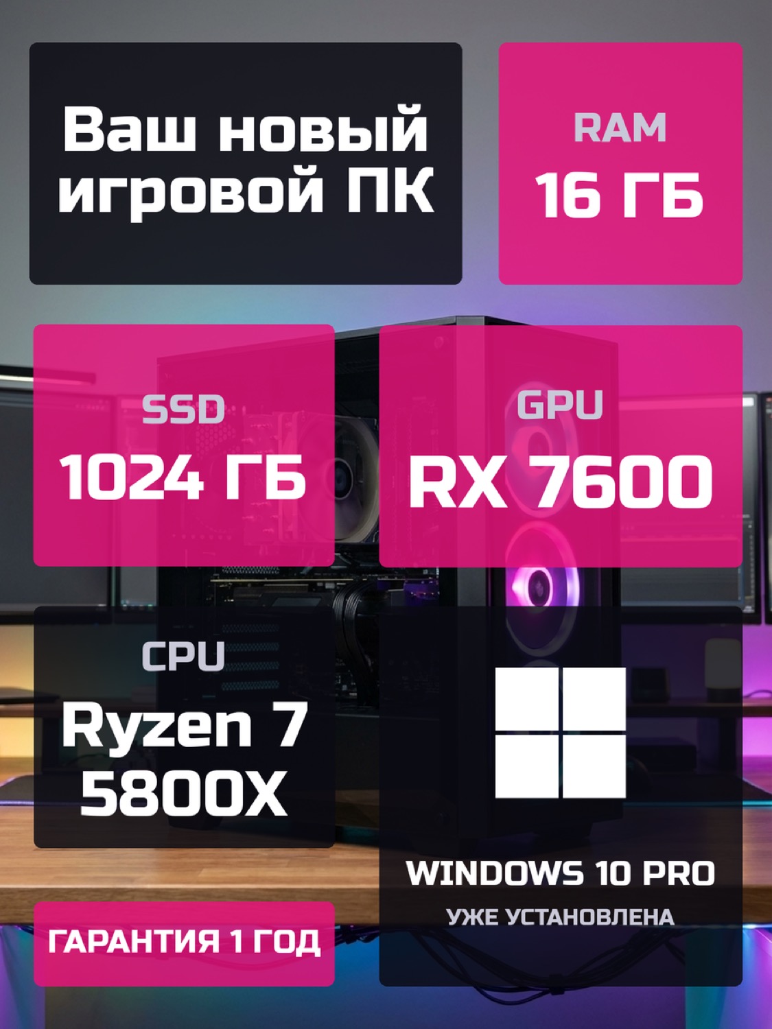 Процессор AMD Ryzen 7 5800X8 ядер · 16 потоков · 3.8 → 4.7 ГГц