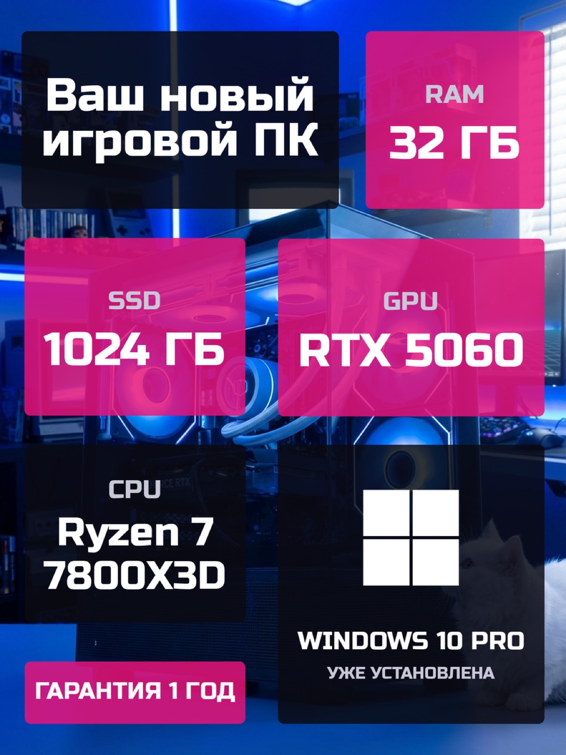 Процессор AMD Ryzen 7 7800X3D8 ядер · 16 потоков · 4.2 → 5.0 ГГц