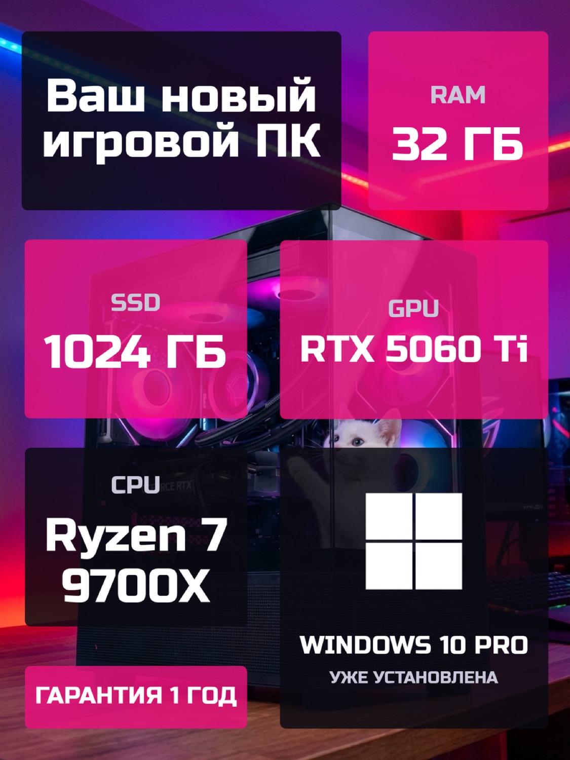Процессор AMD Ryzen 7 9700X8 ядер · 16 потоков · 3.8 → 5.5 ГГц