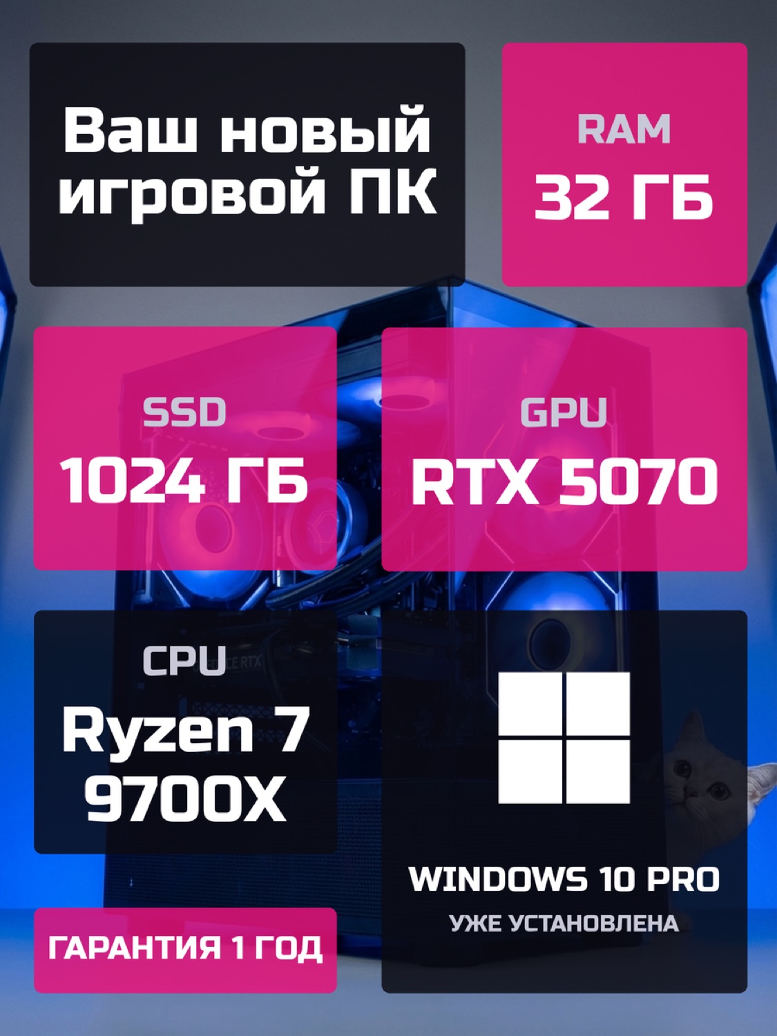 Процессор AMD Ryzen 7 9700X8 ядер · 16 потоков · 3.8 → 5.5 ГГц