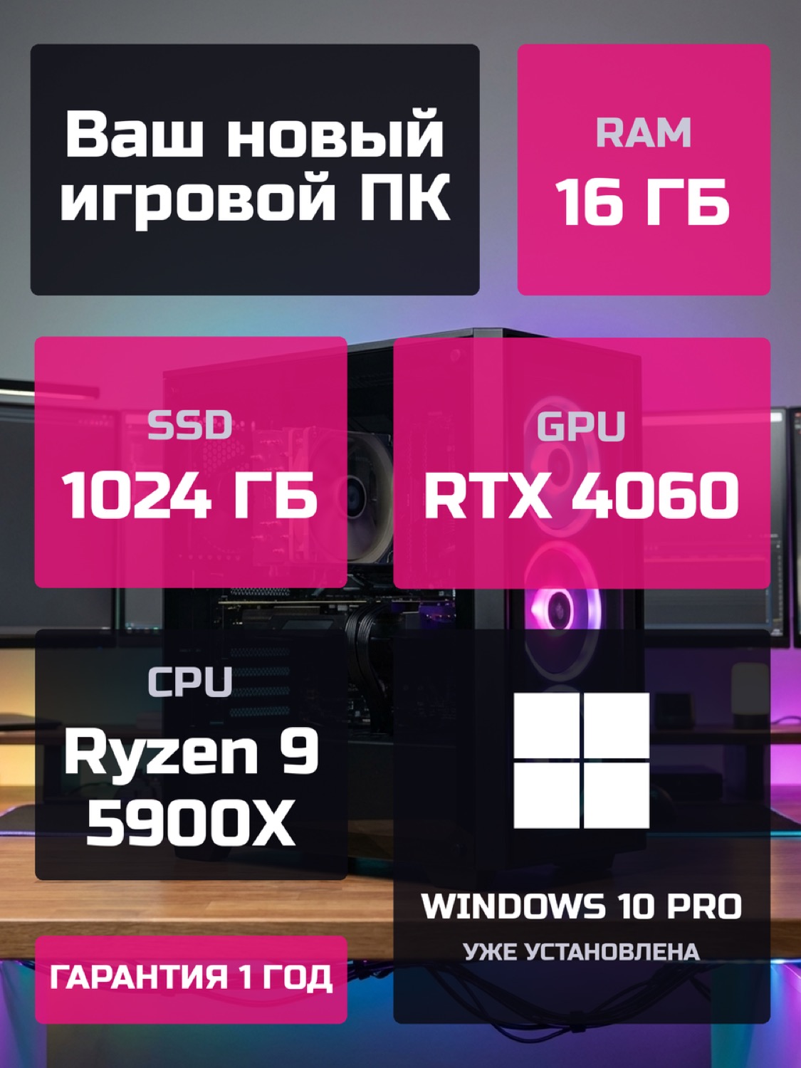 Процессор AMD Ryzen 9 5900X12 ядер · 24 потоков · 3.7 → 4.8 ГГц