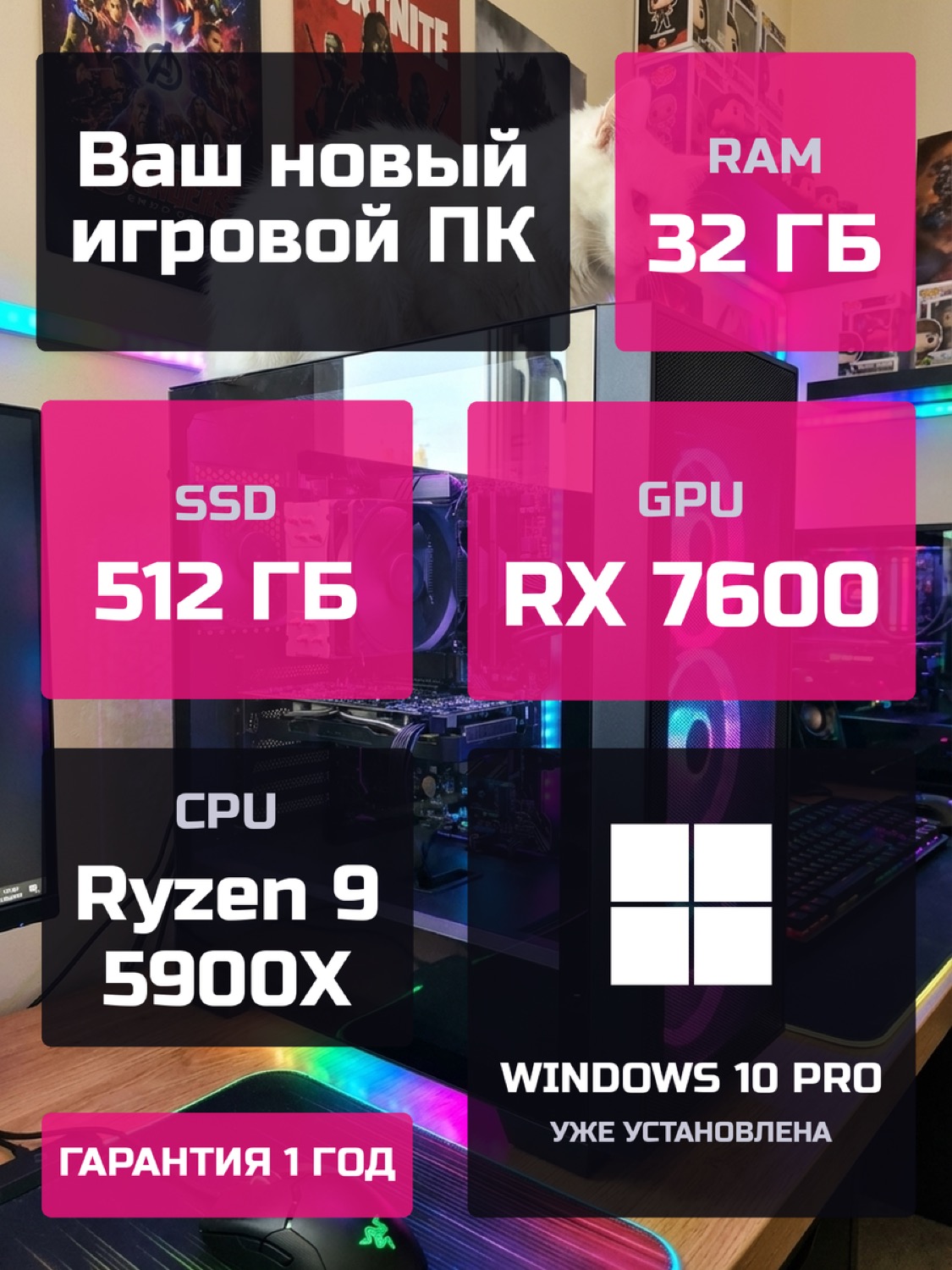 Процессор AMD Ryzen 9 5900X12 ядер · 24 потоков · 3.7 → 4.8 ГГц