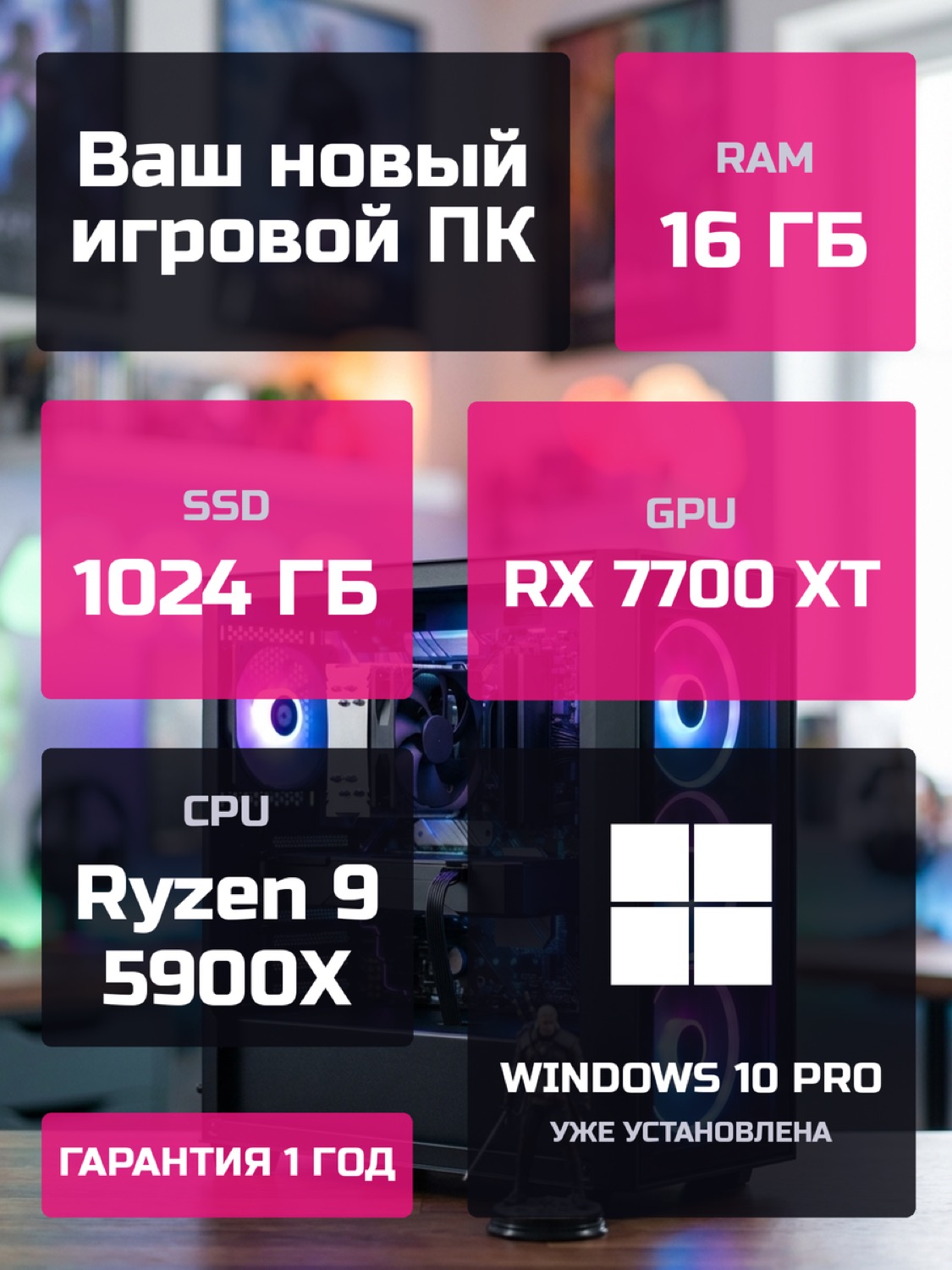 Процессор AMD Ryzen 9 5900X12 ядер · 24 потоков · 3.7 → 4.8 ГГц