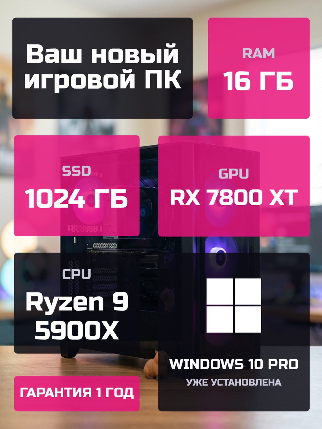 Процессор AMD Ryzen 9 5900X12 ядер · 24 потоков · 3.7 → 4.8 ГГц